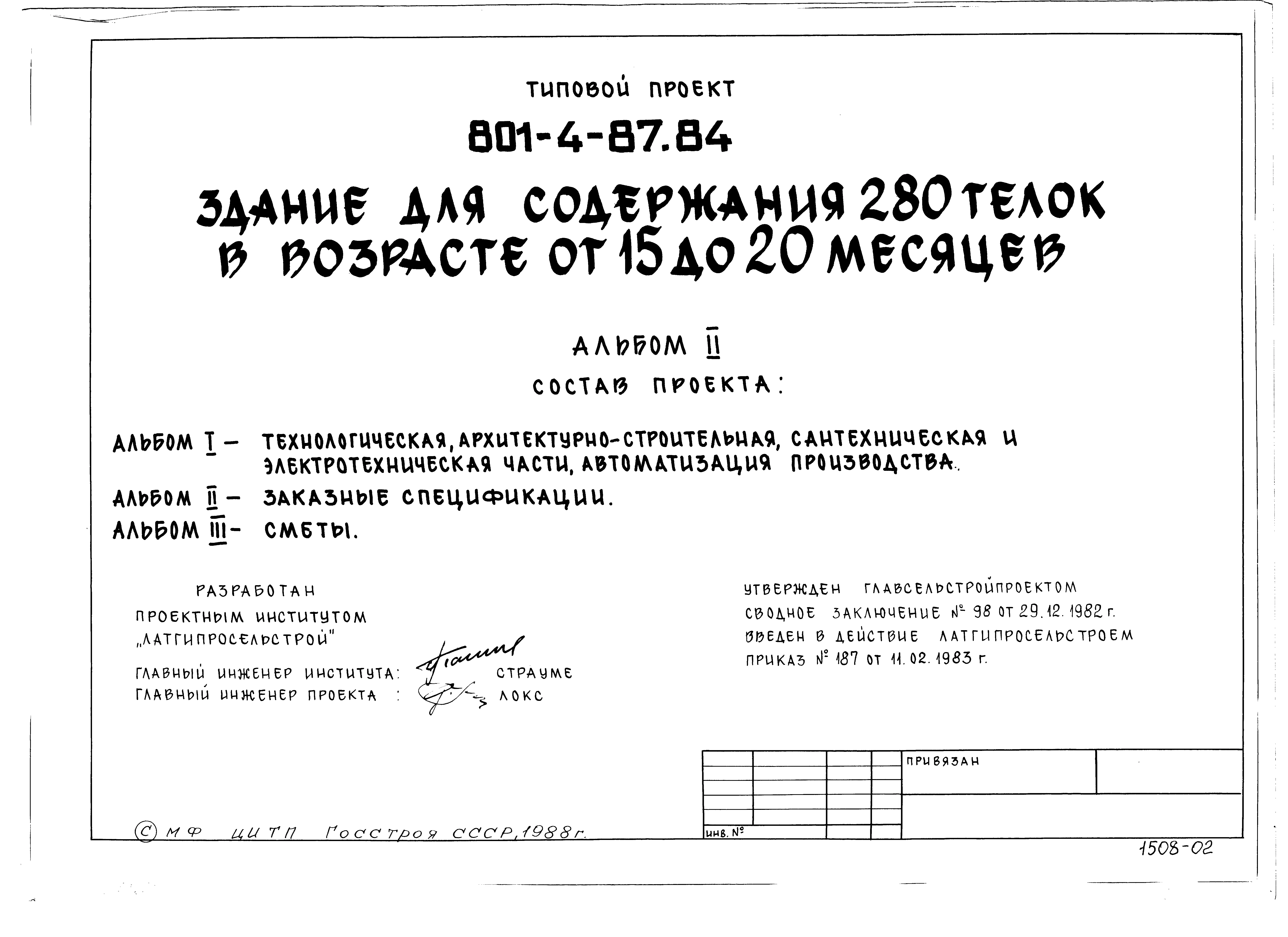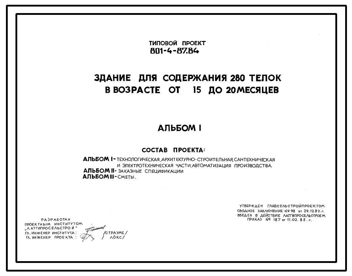 Типовой проект 801-4-87.84 Здание для содержания 280 телок в возрасте от 15 до 20 месяцев
