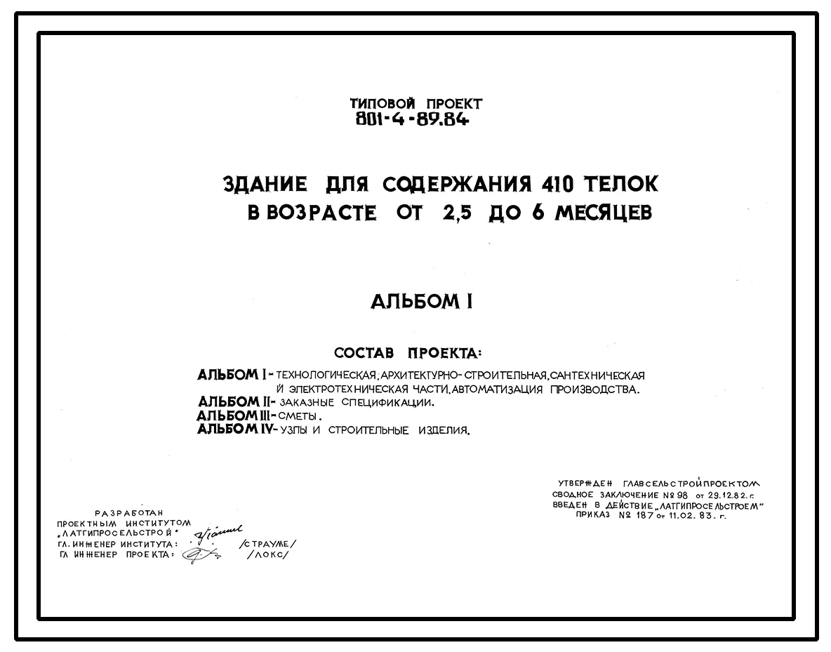Типовой проект 801-4-89.84 Здание для содержания 410 телок в возрасте от 2,5 до 6 месяцев