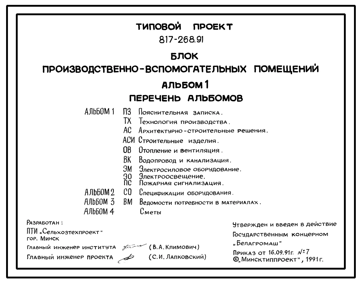 Типовой проект 817-268.91 Блок производственно-вспомогательных помещений для фермерских хозяйств на 10 дойных коров с законченным производственным циклом