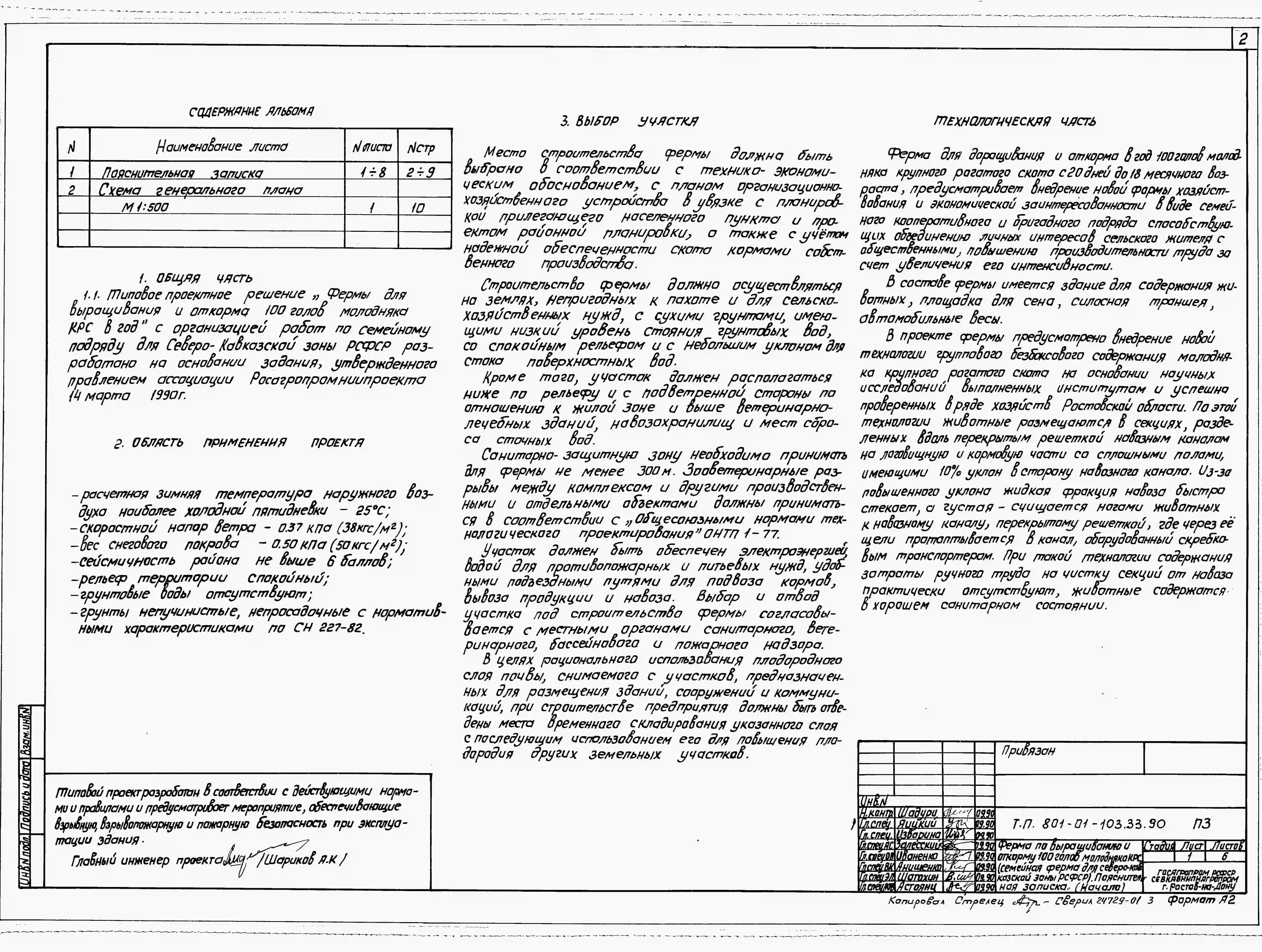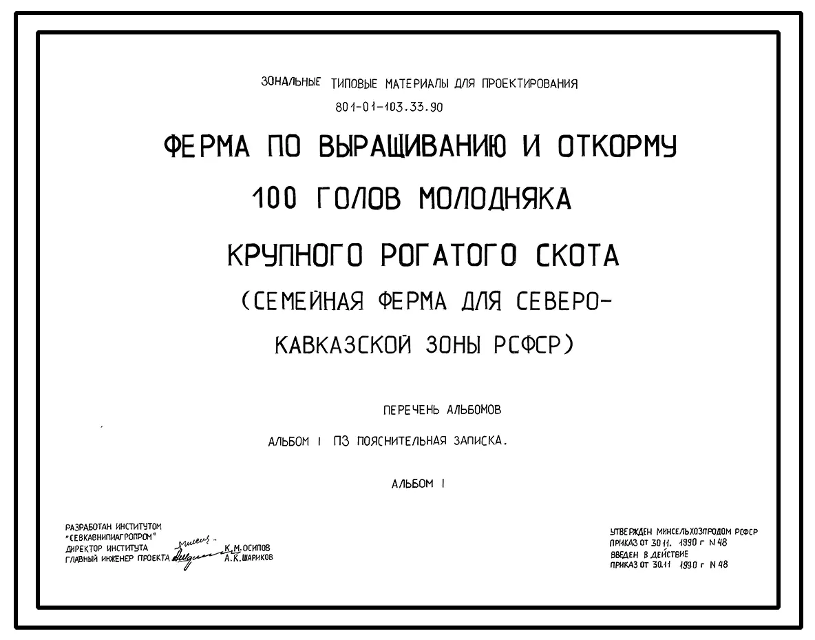 Типовой проект 801-01-103.33.90 Ферма по выращиванию и откорму 100 голов молодняка крупного рогатого скота.