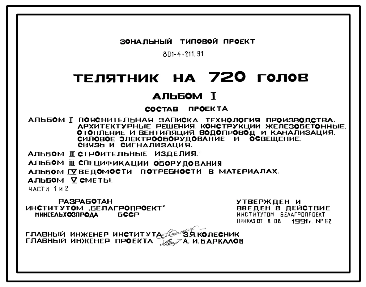 Типовой проект 801-4-211.91 Телятник на 720 голов