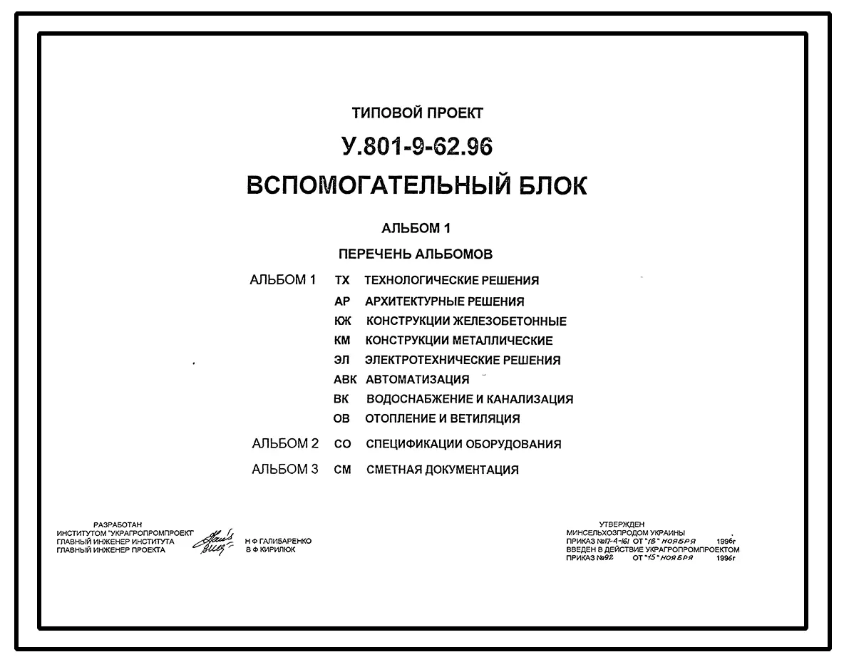 Типовой проект У.801-9-62.96 Вспомогательный блок