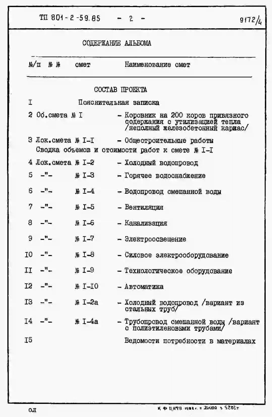 Типовой проект 801-2-59.85 Коровник на 200 коров привязного содержания с утилизацией тепла (неполный железобетонный каркас)