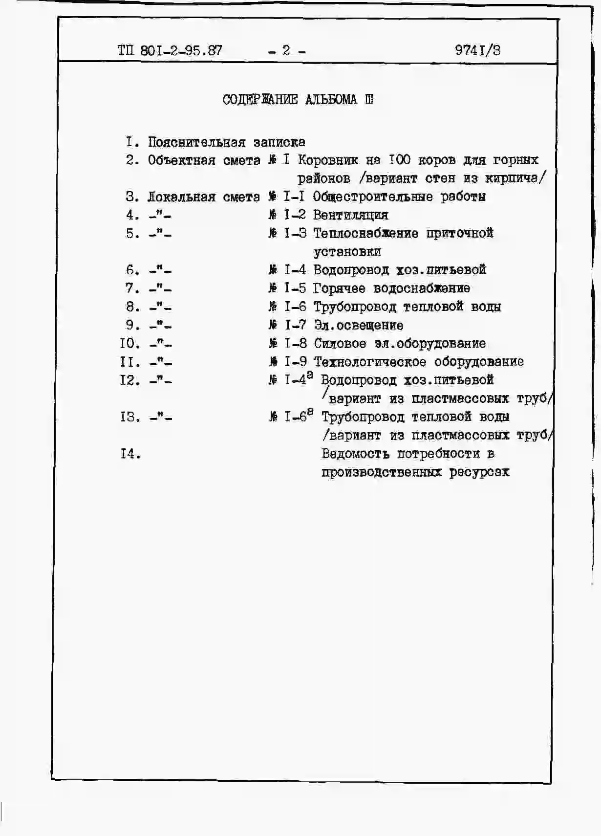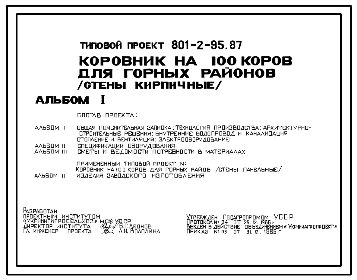 Типовой проект 801-2-95.87 Коровник на 100 коров для горных районов. Содержание привязное. Доение в молокопровод. Раздача кормов мобильная. Удаление навоза транспортерами.