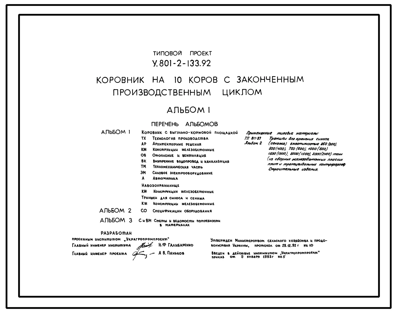 Типовой проект У.801-2-133.92 Коровник на 10 коров с законченным производственным циклом