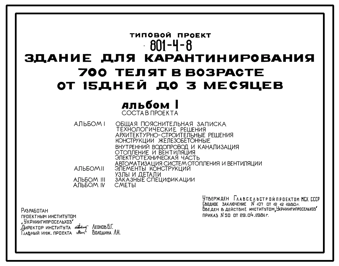 Типовой проект 801-4-8 Здание для карантирования 700 телят в возрасте от 15 дней до 3-х месяцев