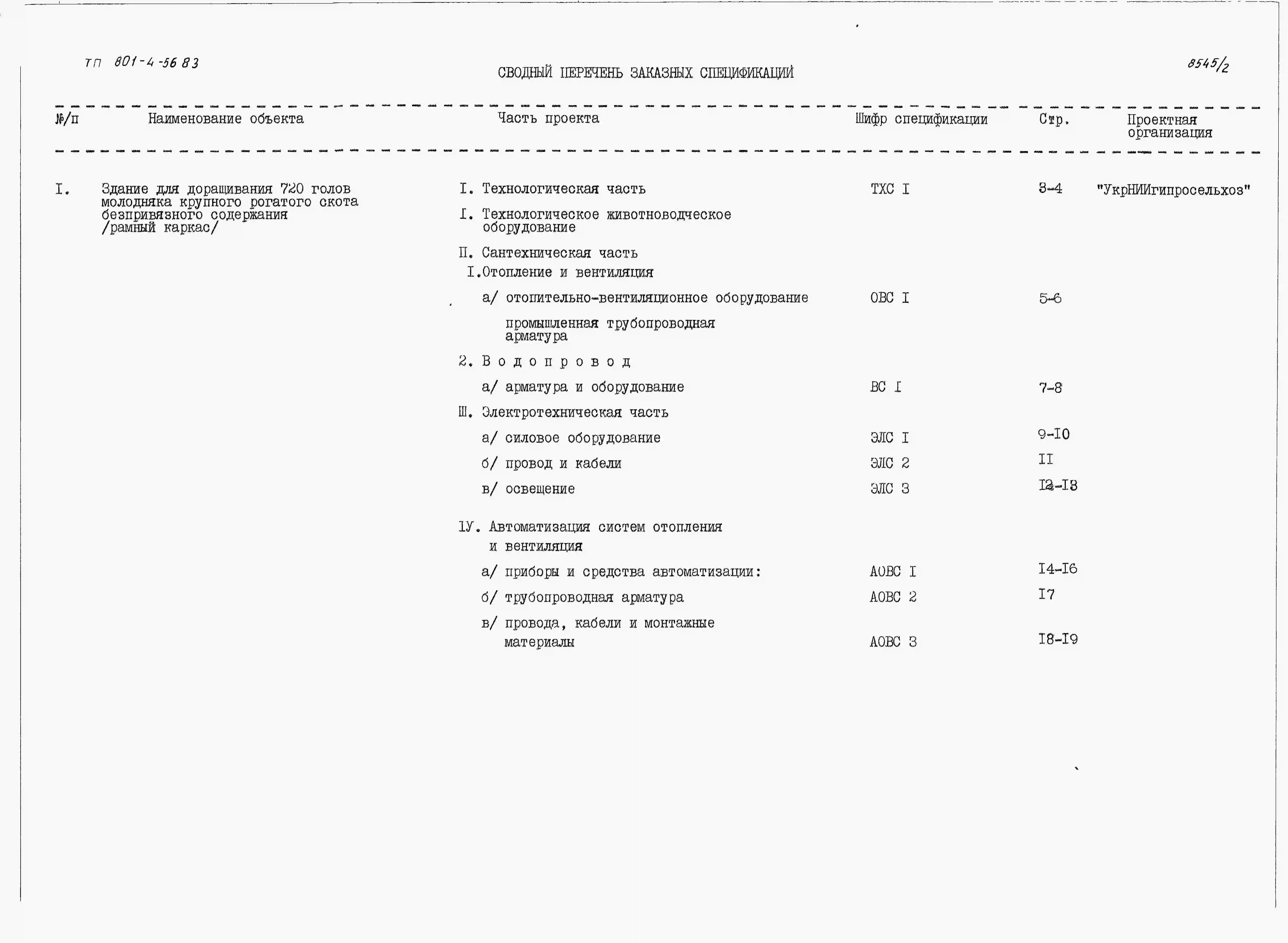 Типовой проект 801-4-56.83 Здание для доращивания 720 голов молодняка крупного рогатого скота беспривязного содержания (рамный каркас)