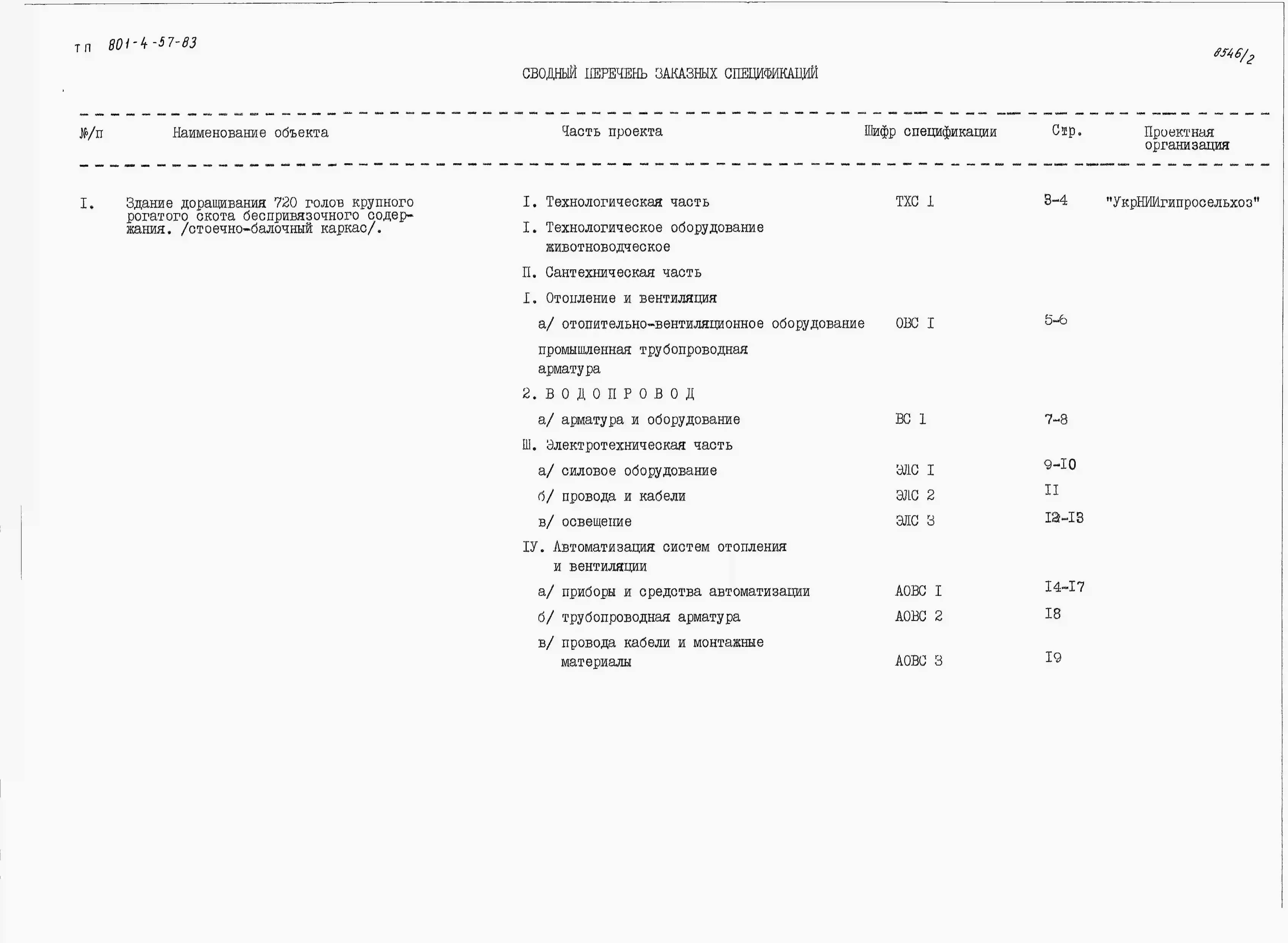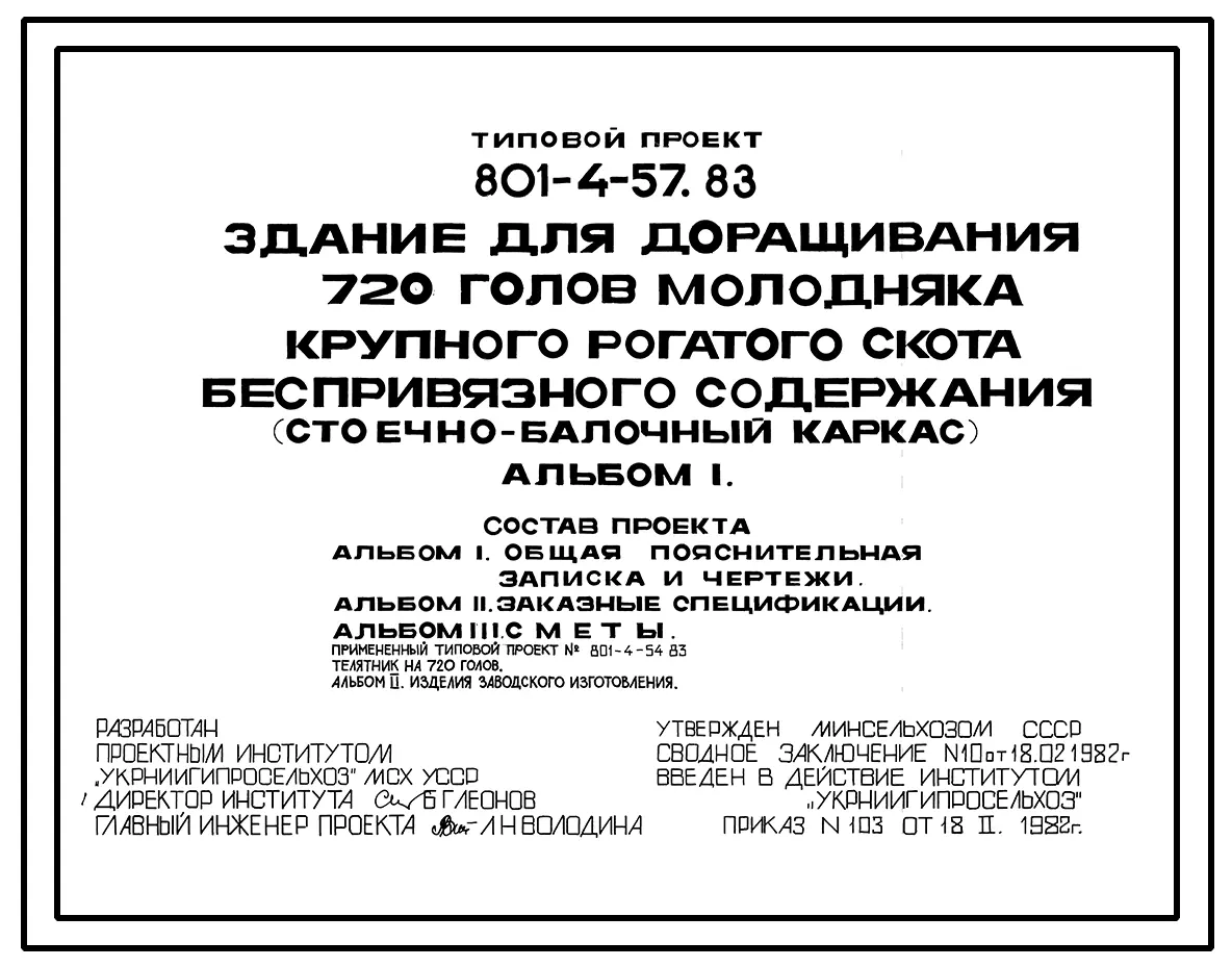 Типовой проект 801-4-57.83 Здание для доращивания 720 голов молодняка крупного рогатого скота беспривязного содержания