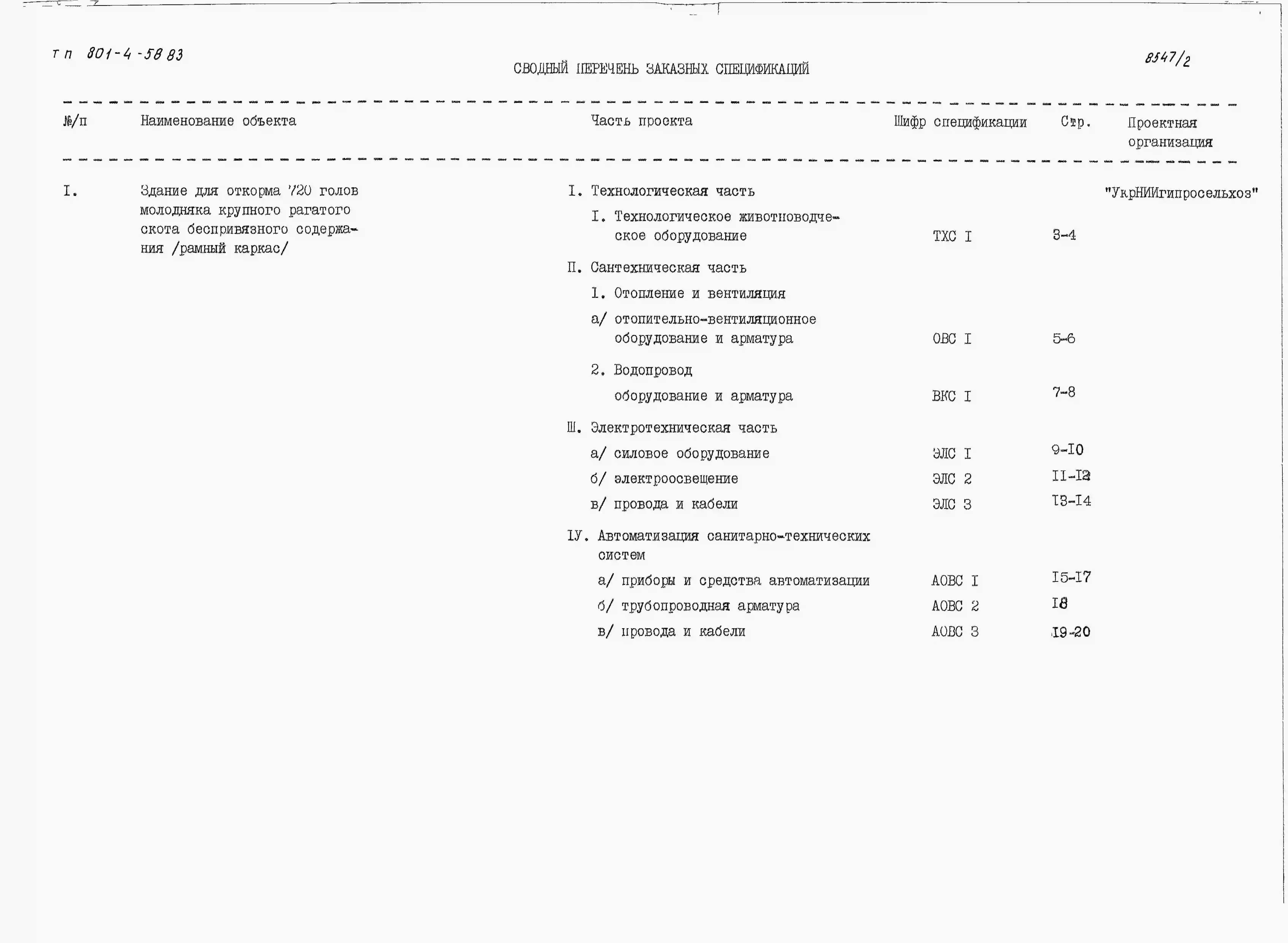 Типовой проект 801-4-58.83 Здание для откорма 720 голов молодняка крупного рогатого скота беспривязного содержания (рамный каркас)