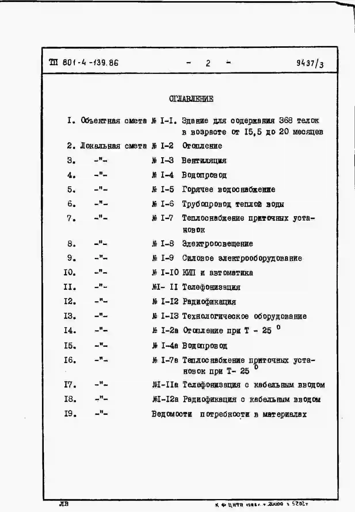 Типовой проект 801-4-139.86 Здание для содержания 368 телок в возрасте от 15,5 до 20 месяцев