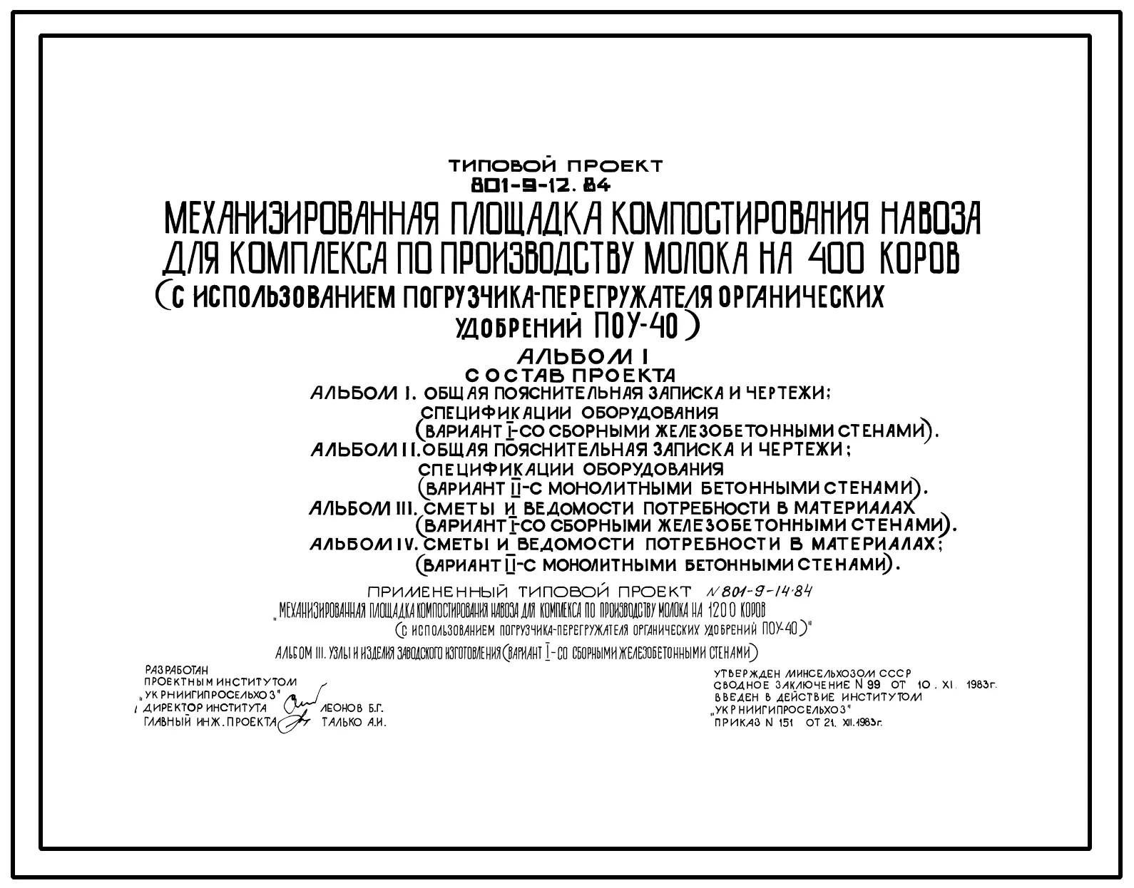 Типовой проект 801-9-12.84 Механизированная площадка компостирования навоза для комплекса по производству молока на 400 коров (с использованием погрузчика-перегружателя органических удобрений ПОУ-40)