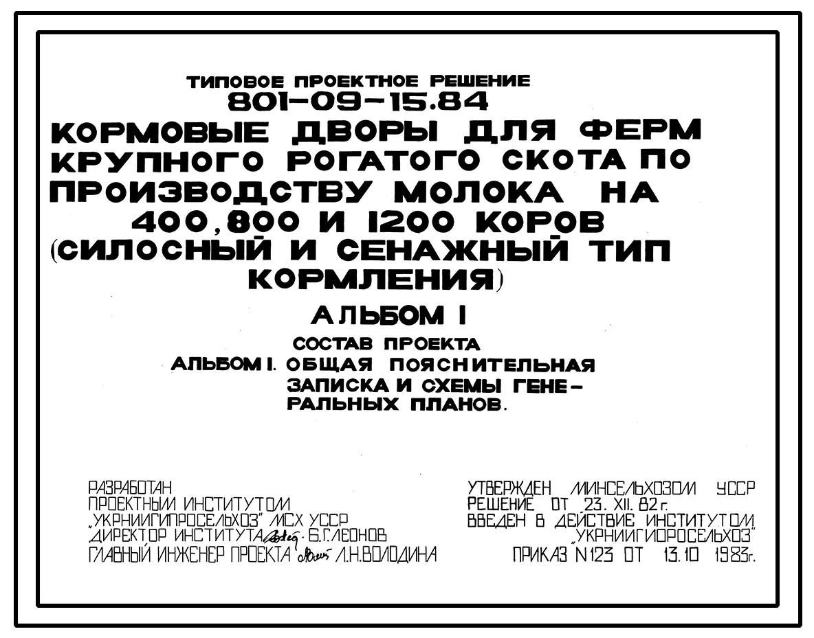 Типовой проект 801-09-15.84 Кормовые дворы для ферм по производству молока на 400, 800 и 1200 коров (силосный и сенажный типы кормления)