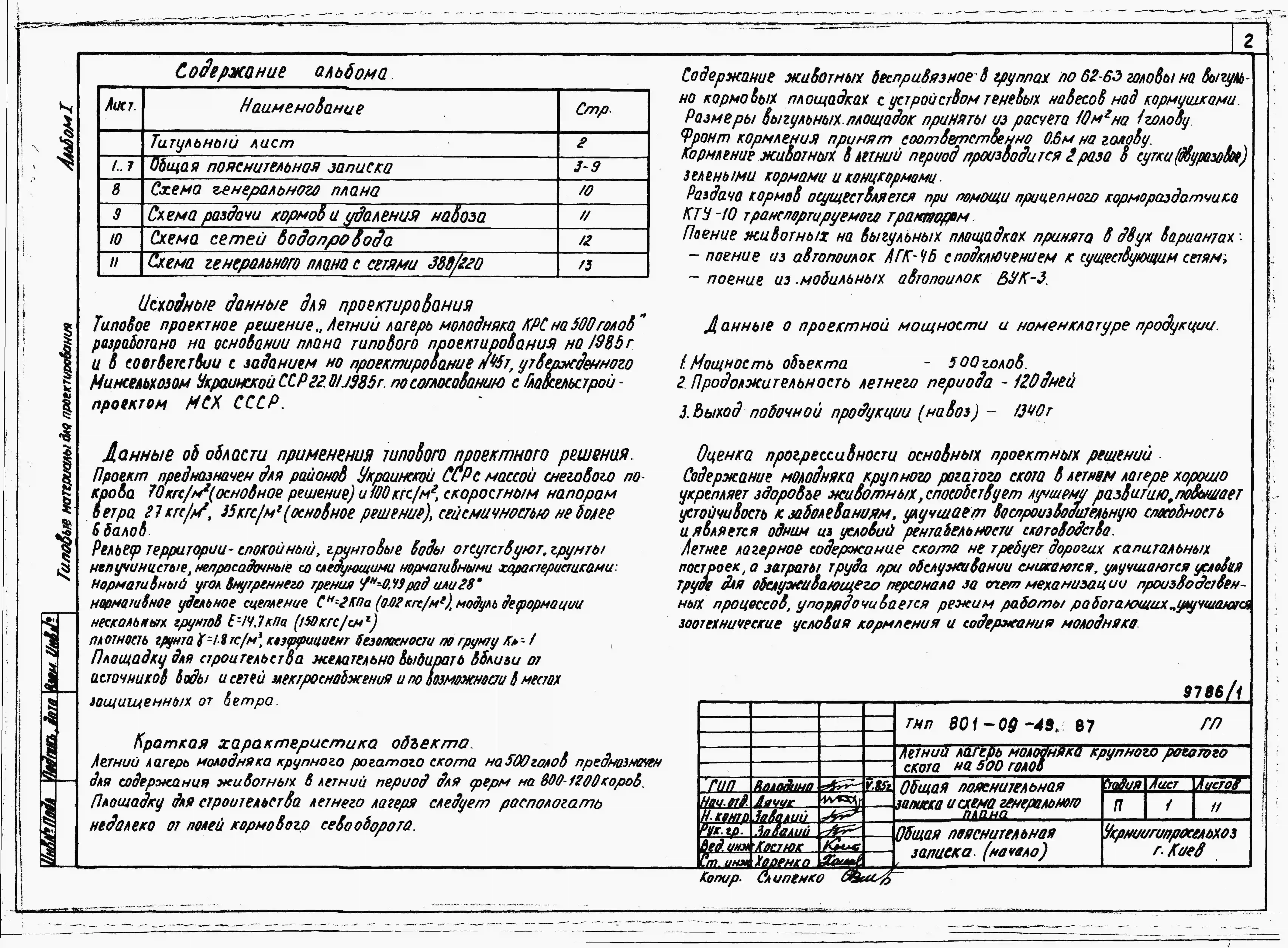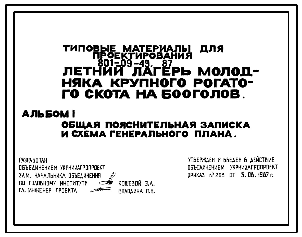 Типовой проект 801-09-49.87 Летний лагерь молодняка крупного рогатого скота на 500 голов. Содержание беспривязное. Раздача кормов мобильная. Удаление навоза бульдозером