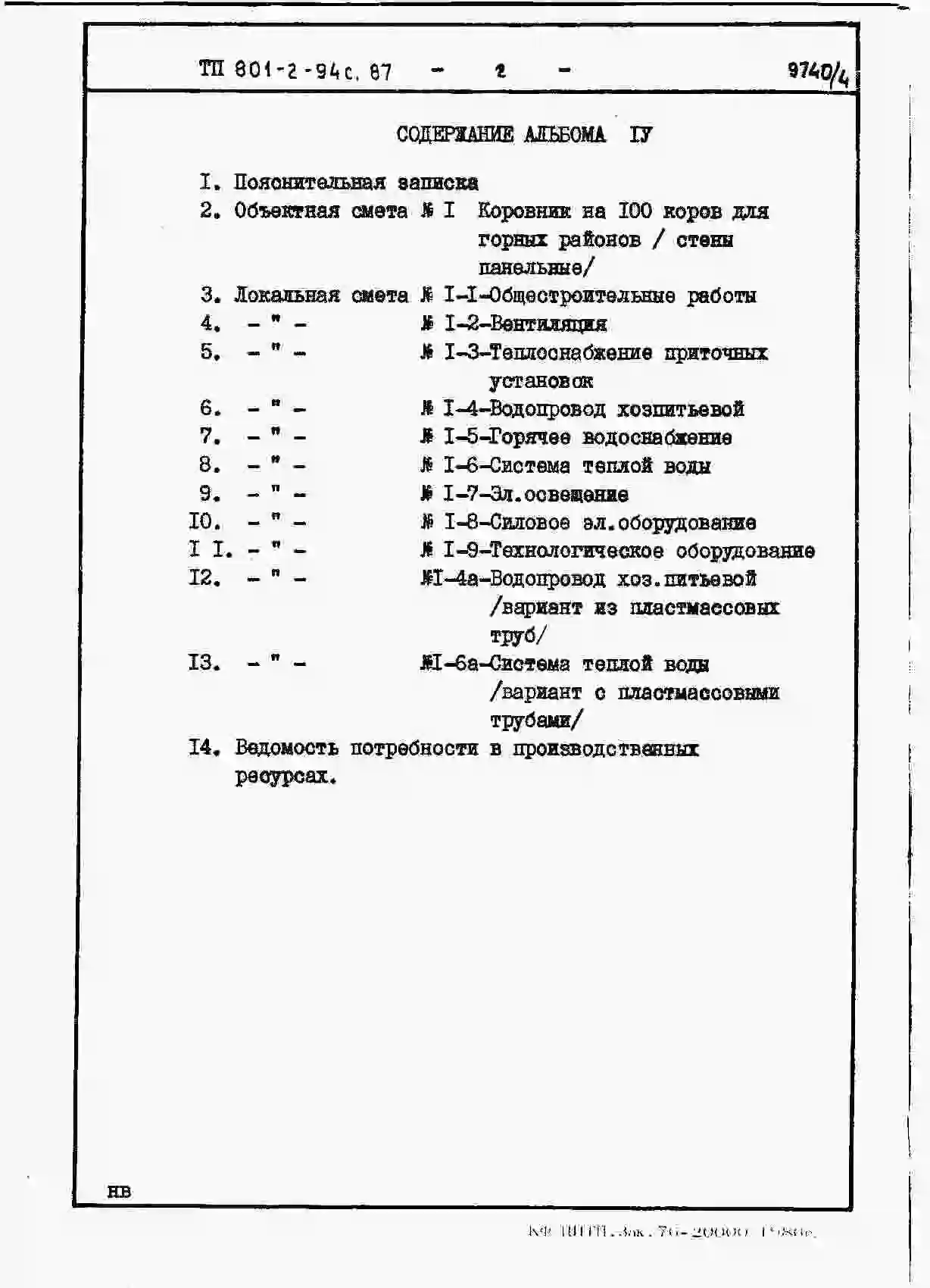 Типовой проект 801-2-94с.87 Коровник на 100 коров для горных районов (стены панельные)