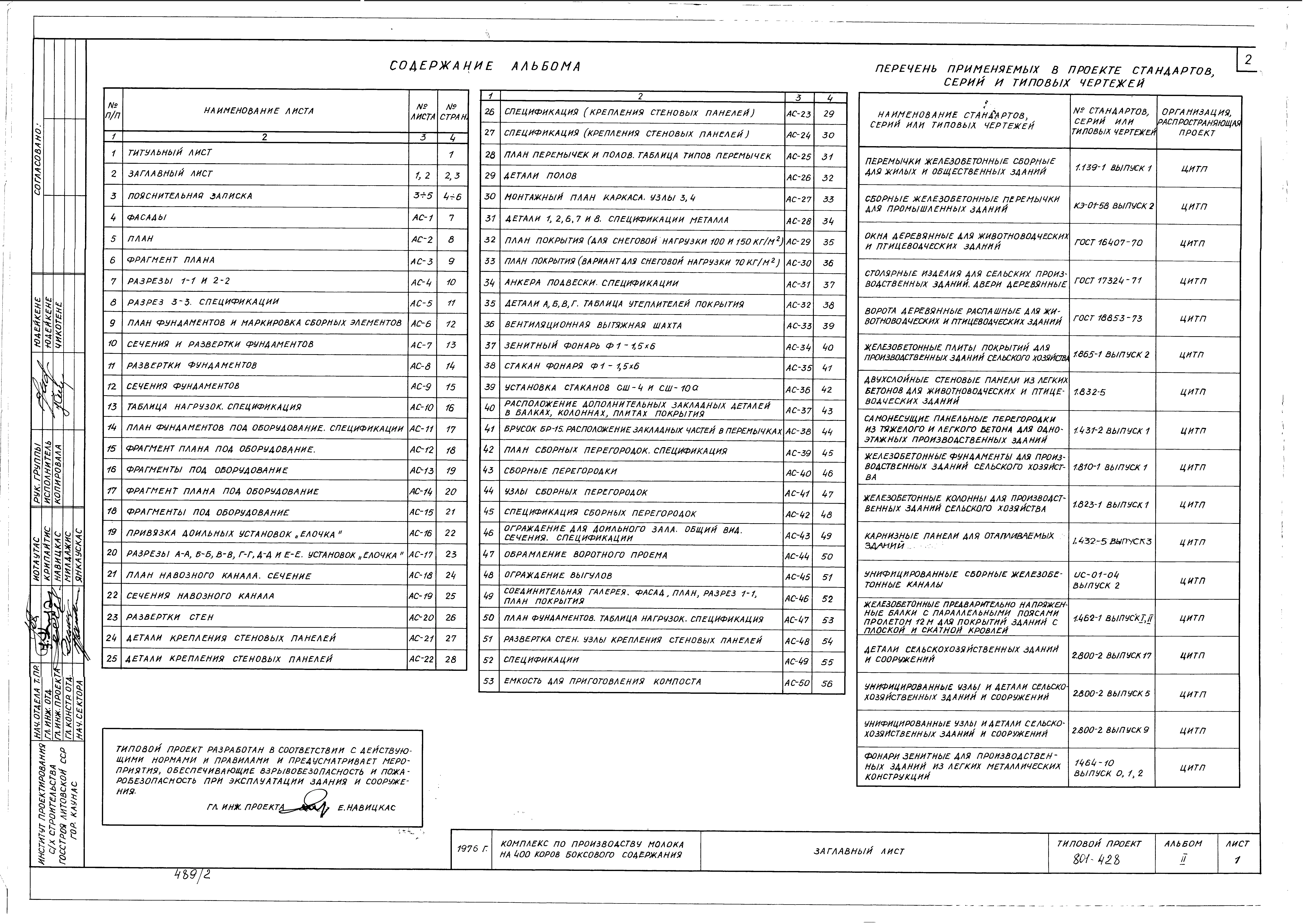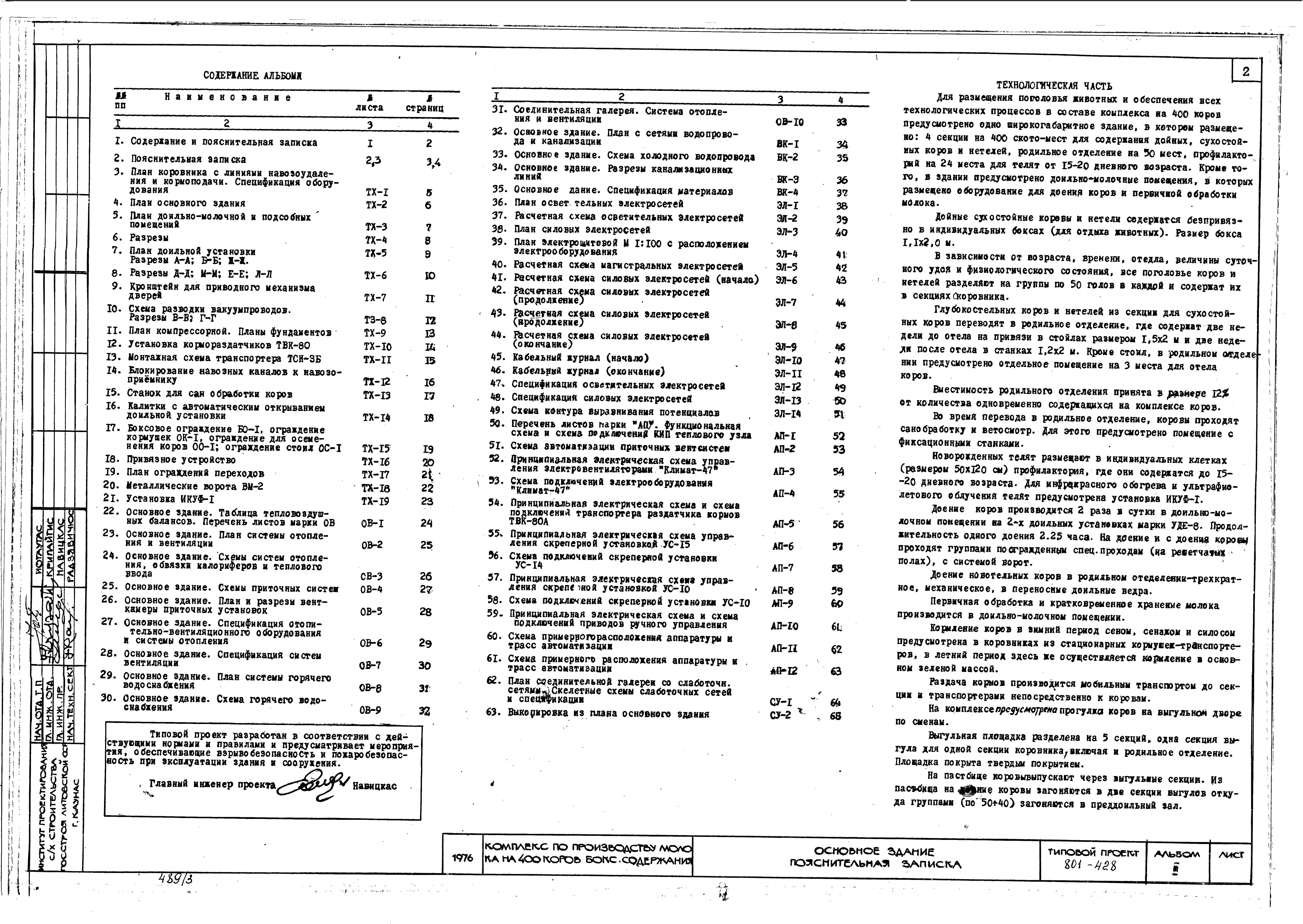 Типовой проект 801-428 Комплекс по производству молока на 400 коров боксового содержания