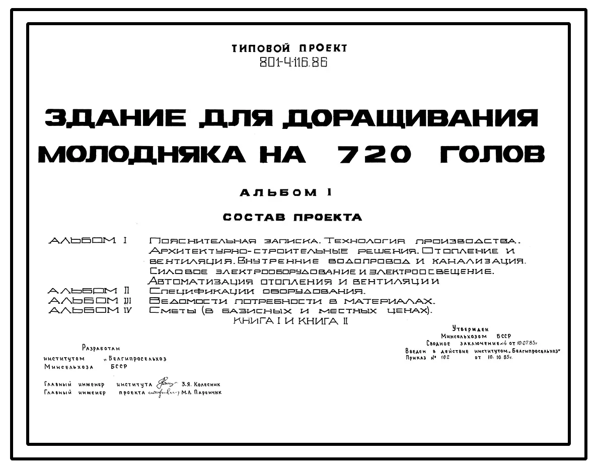 Типовой проект 801-4-116.86 Здание для доращивания молодняка на 720 голов