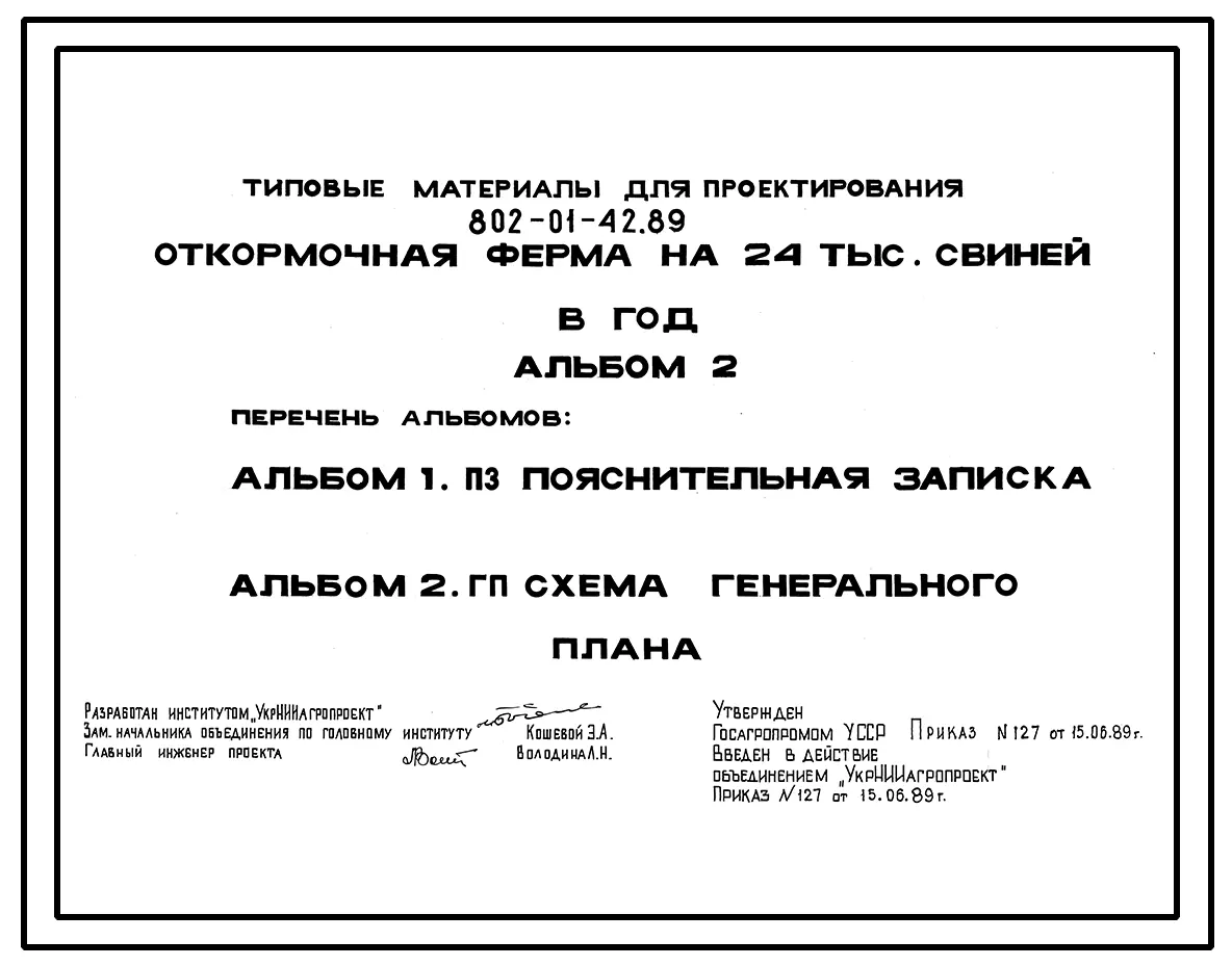 Типовой проект 802-01-42.89 Откормочная ферма на 24 тыс.свиней в год