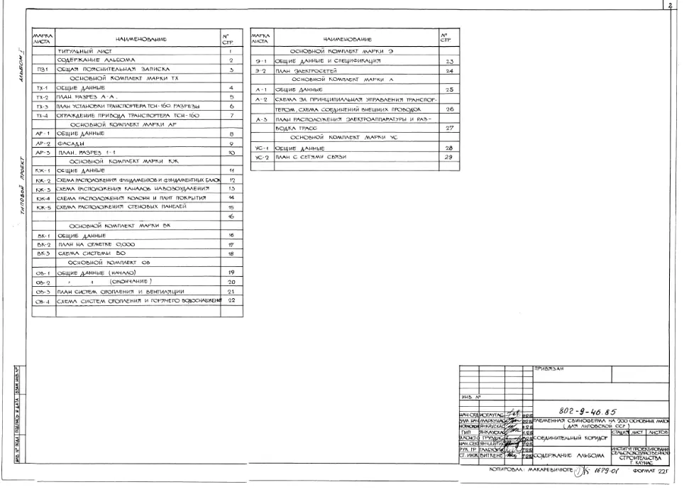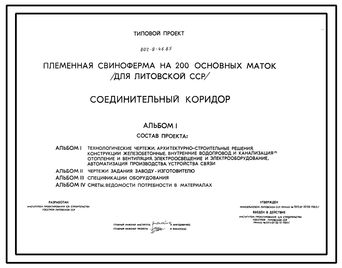 Типовой проект 802-9-46.85 Соединительный коридор для племенной свинофермы на 200 основных маток.