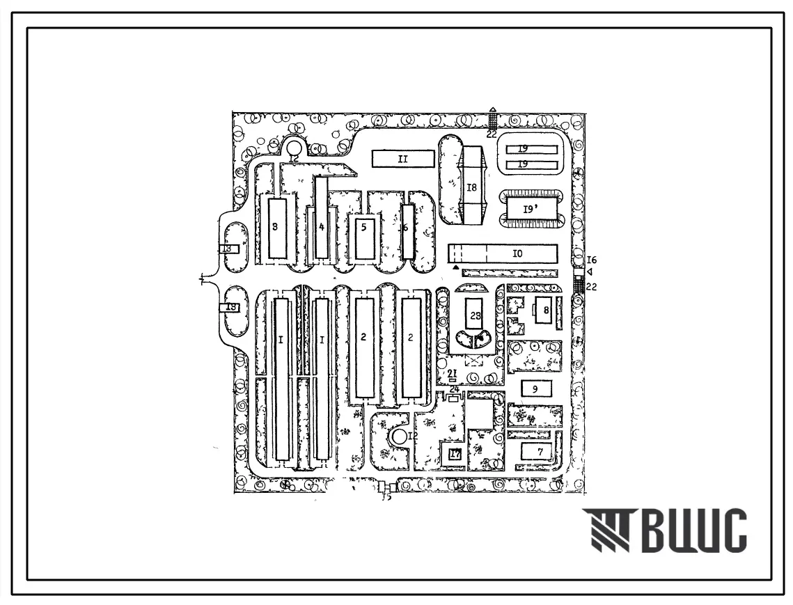 Типовой проект 819-61 Свиноводческие племенные фермы на 50, 100 и 200 основных маток. Схемы планировок.
