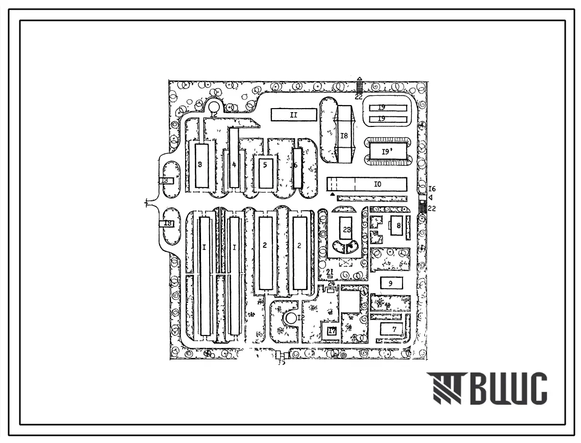 Типовой проект 819-61 Свиноводческие племенные фермы на 50, 100 и 200 основных маток. Схемы планировок.