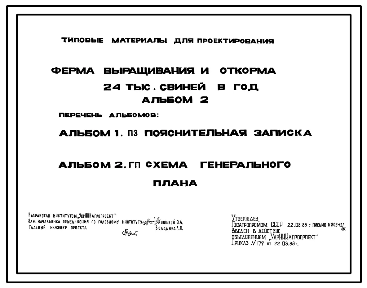 Типовой проект 802-01-39.88 Ферма выращивания и откорма 24 тыс. свиней в год