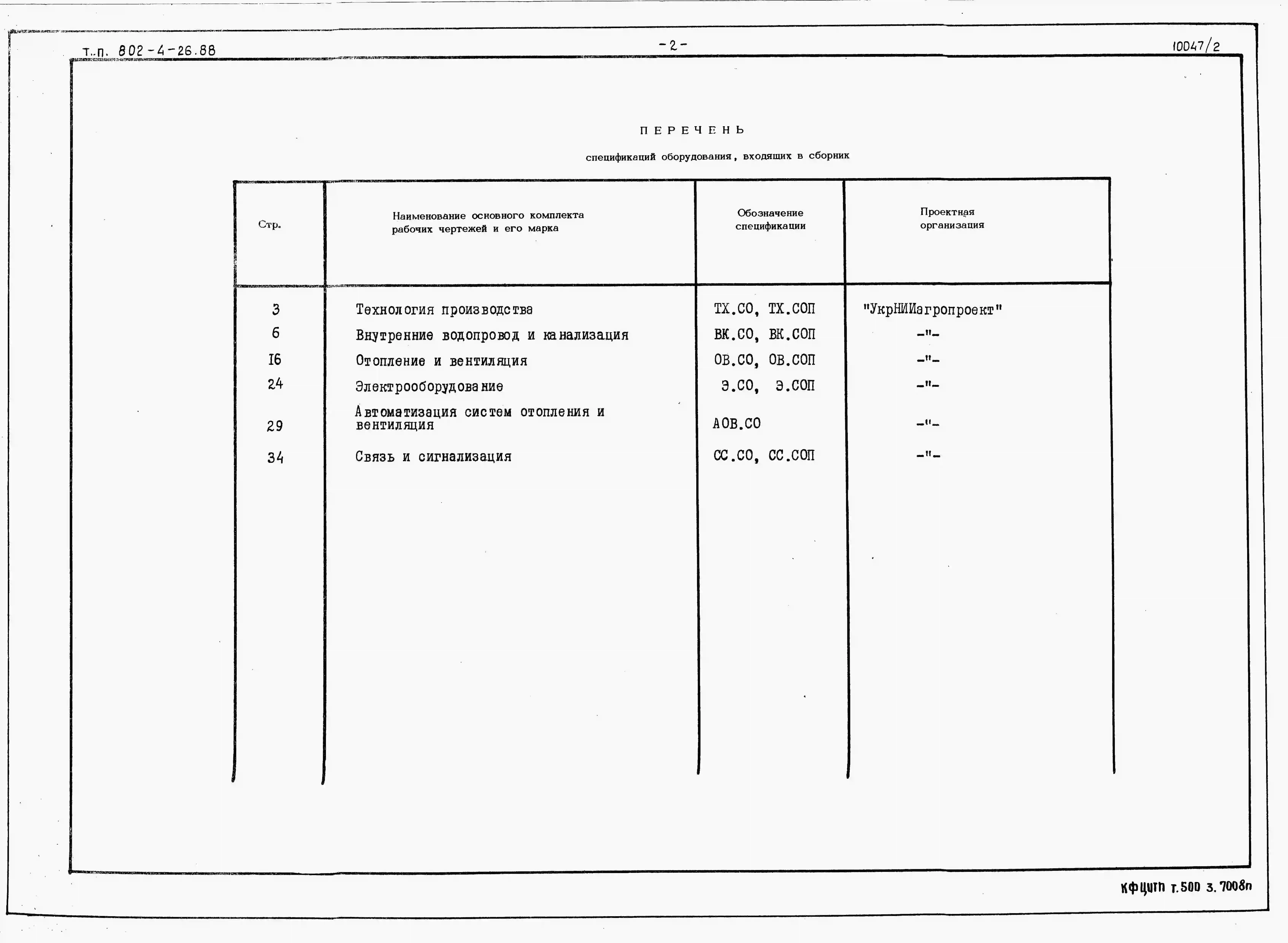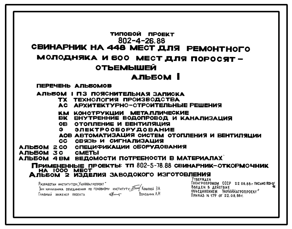 Типовой проект 802-4-26.88 Свинарник на 448 мест для ремонтного молодняка и 600 мест для поросят-отъемышей