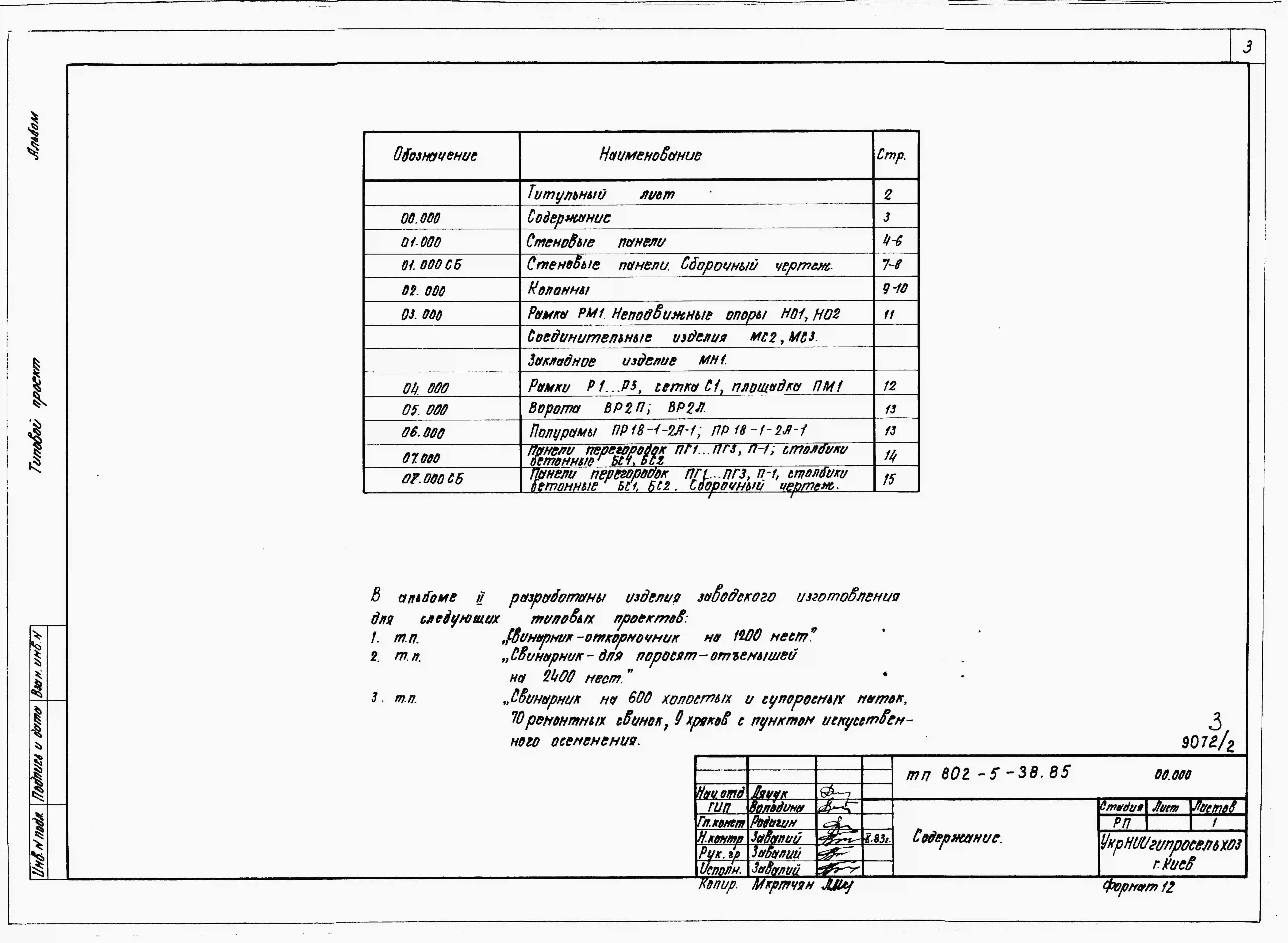 Типовой проект 802-5-38.85 Свинарник-откормочник на 1200 мест