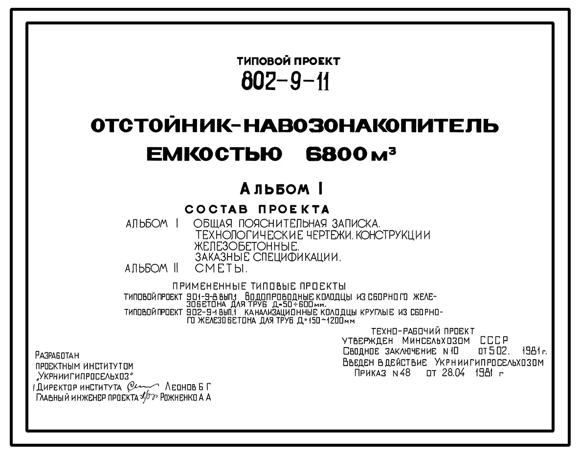 Типовой проект 802-9-11 Отстойник-навозонакопитель емкостью 6800 м2