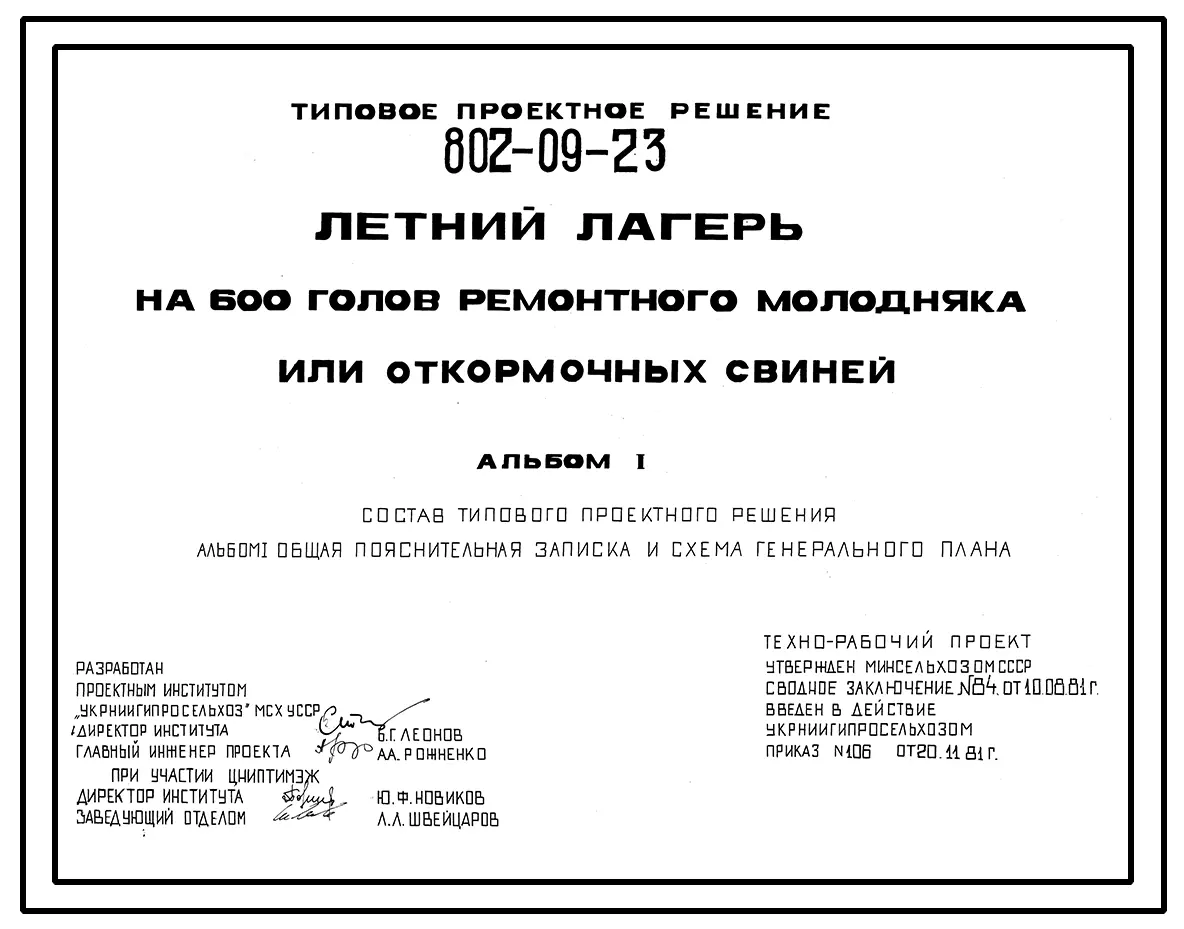 Типовой проект 802-09-23 Летний лагерь на 600 голов ремонтного молодняка или откормочных свиней