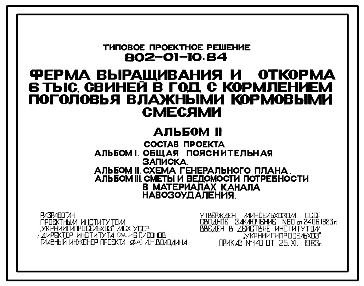 Типовой проект 802-01-10.84 Ферма выращивания и откорма 6 тыс. свиней в год с кормлением поголовья влажными кормовыми смесями