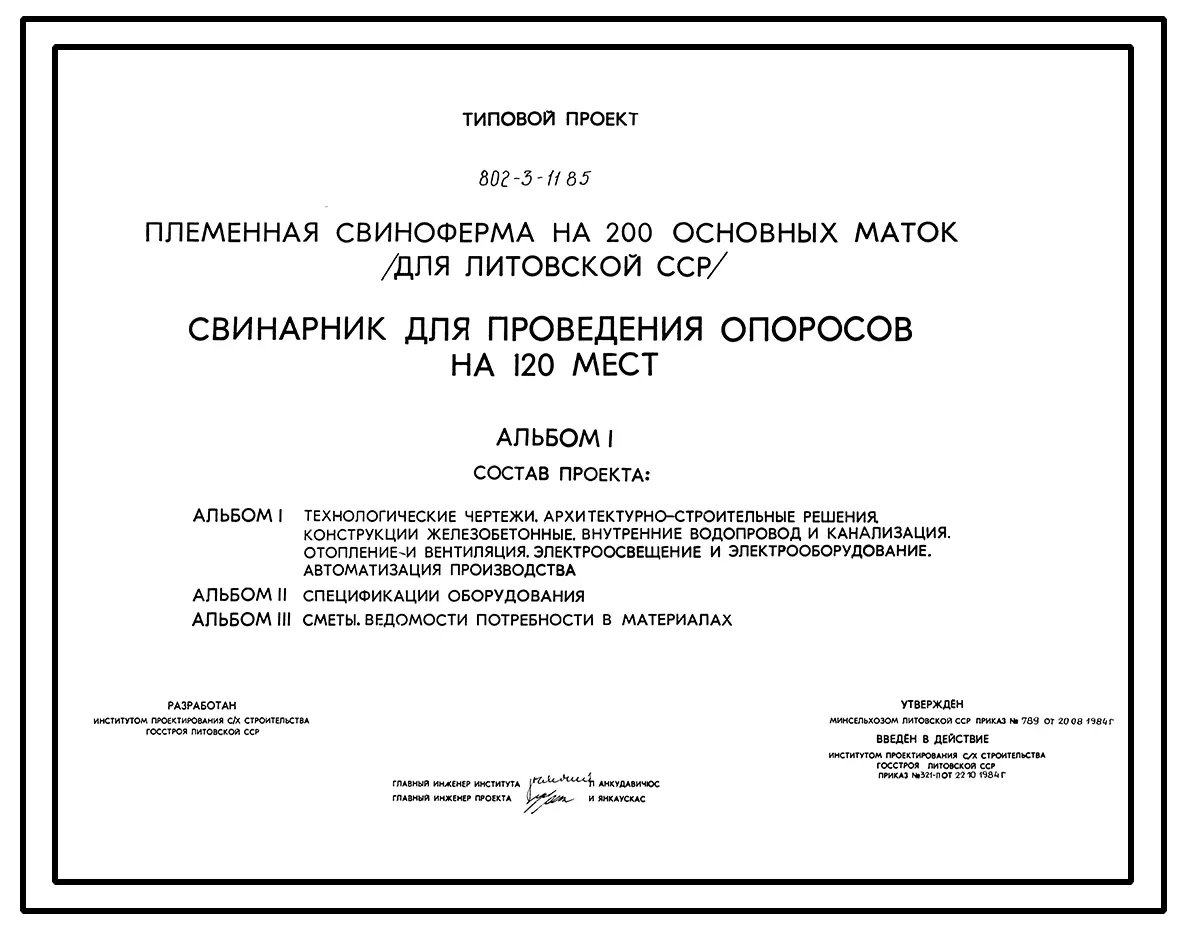 Типовой проект 802-3-11.85 Свинарник для проведения опоросов на 120 мест.