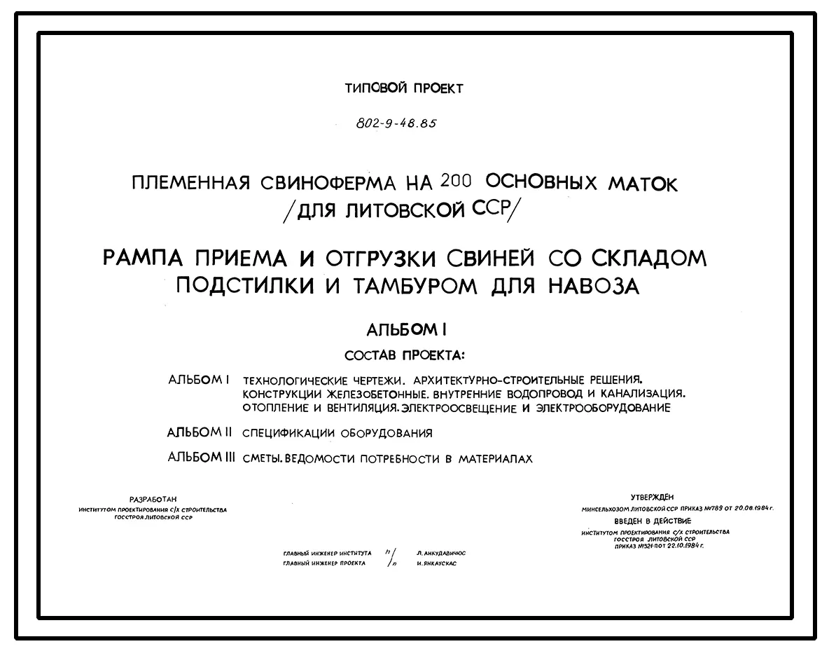 Типовой проект 802-9-48.85 Рампа приема и отгрузки свиней со складом подстилки и тамбуром для навоза.