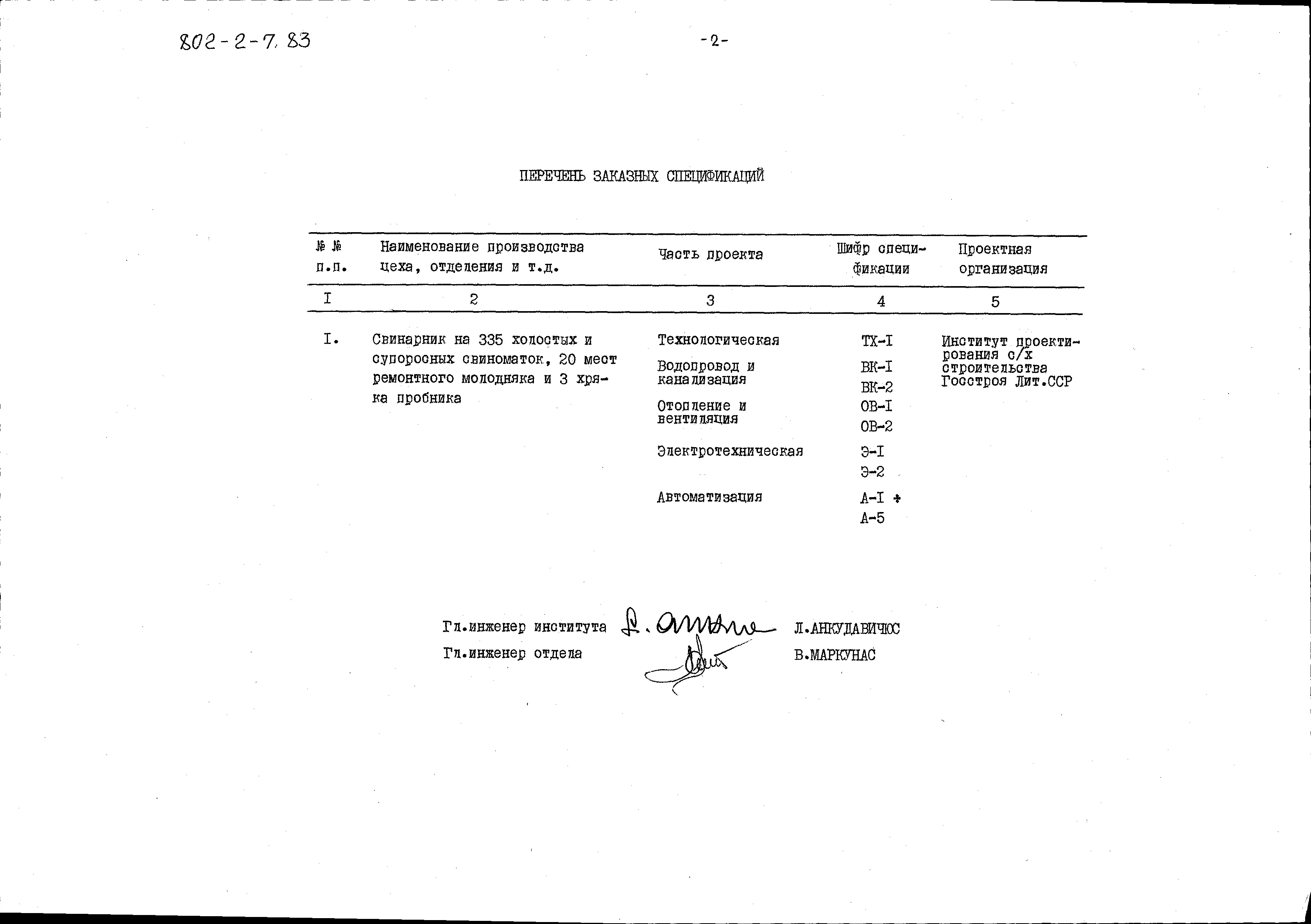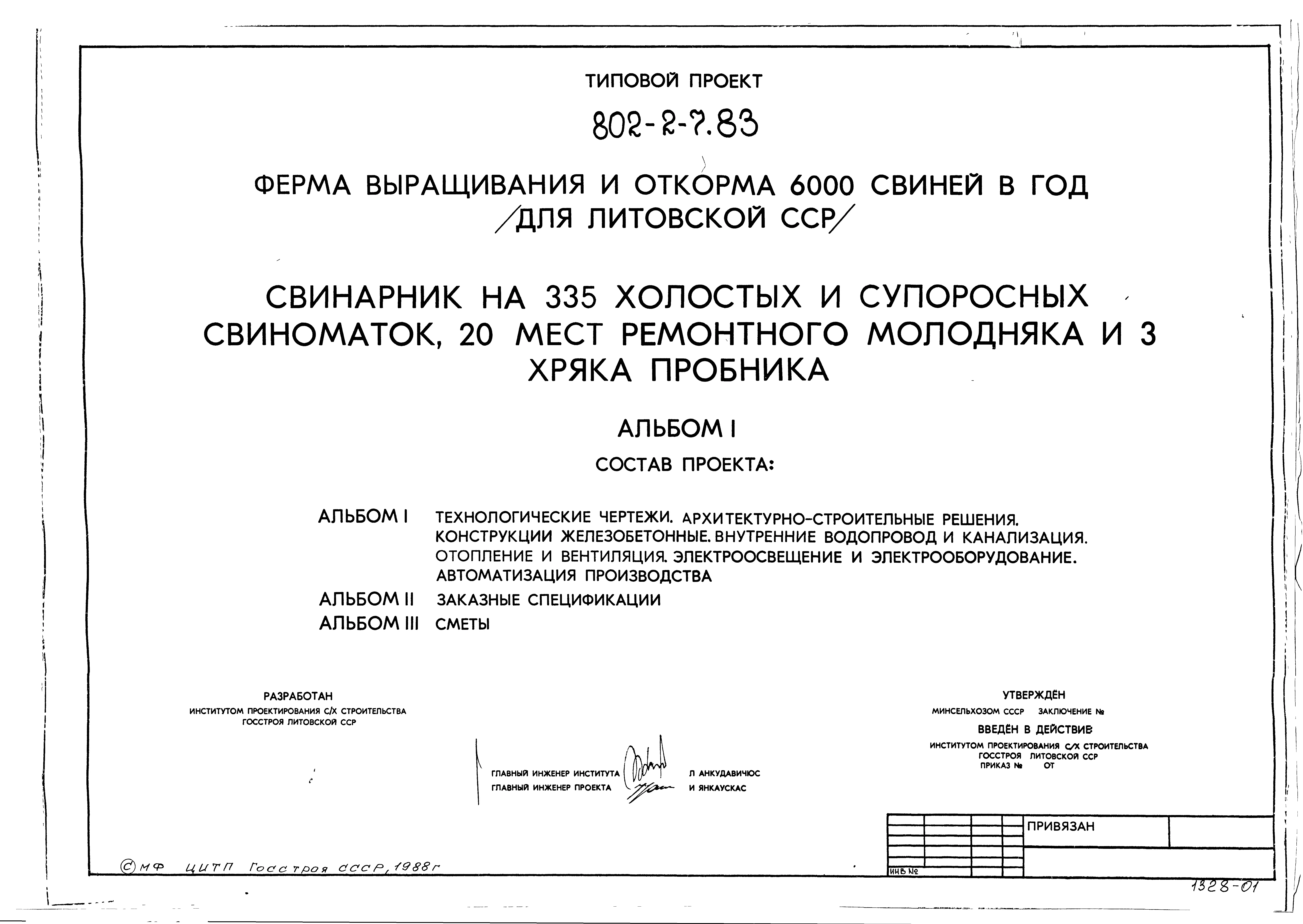 Типовой проект 802-2-7.83 Свинарник на 335 холостых и супоросных свиноматок, 20 мест ремонтного молодняка и 3 хряка пробника