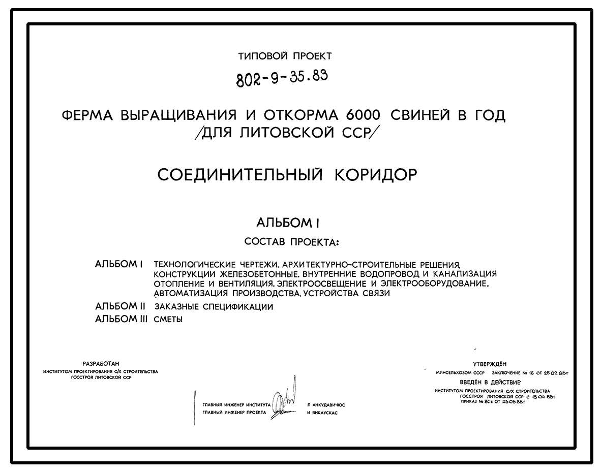 Типовой проект 802-9-35.83 Соединительный коридор для фермы выращивания и откорма 6 тыс. свиней в год
