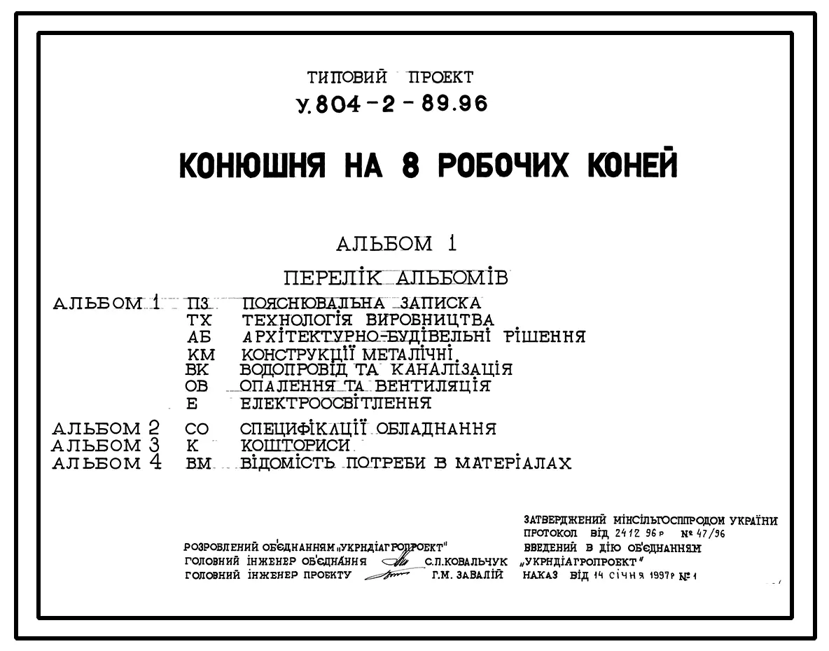 Типовой проект У.804-2-89.96 Конюшня на 8 рабочих лошадей