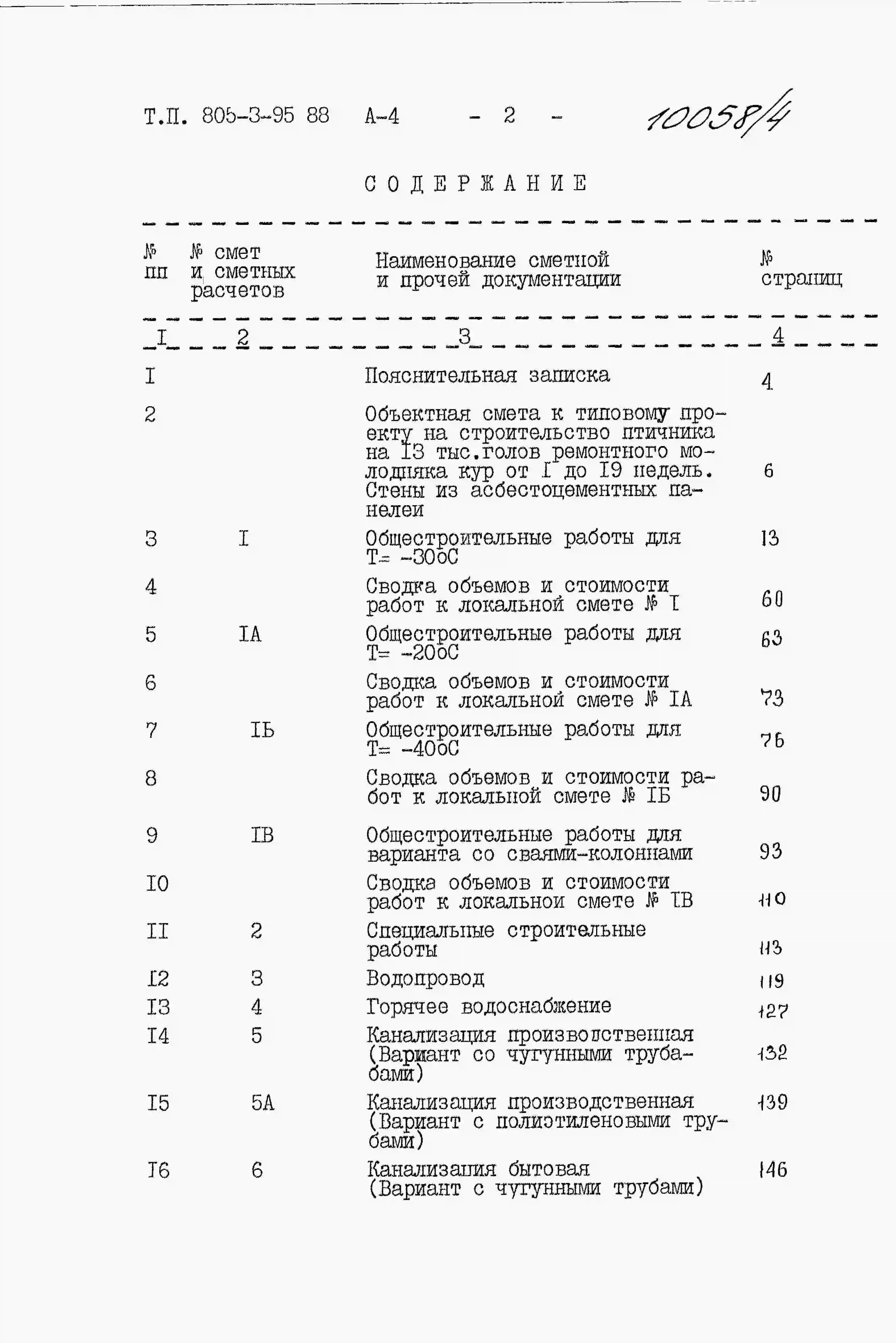 Типовой проект 805-3-95.88 Птичник на 13 тыс. голов ремонтного молодняка кур от 1 до 19 недель. Птица содержится на глубокой подстилке с применением комплекта оборудования КРМ-18. Размеры здания -18x96 м. Расчетная температура: -20, -30, -40°С. Стены - па
