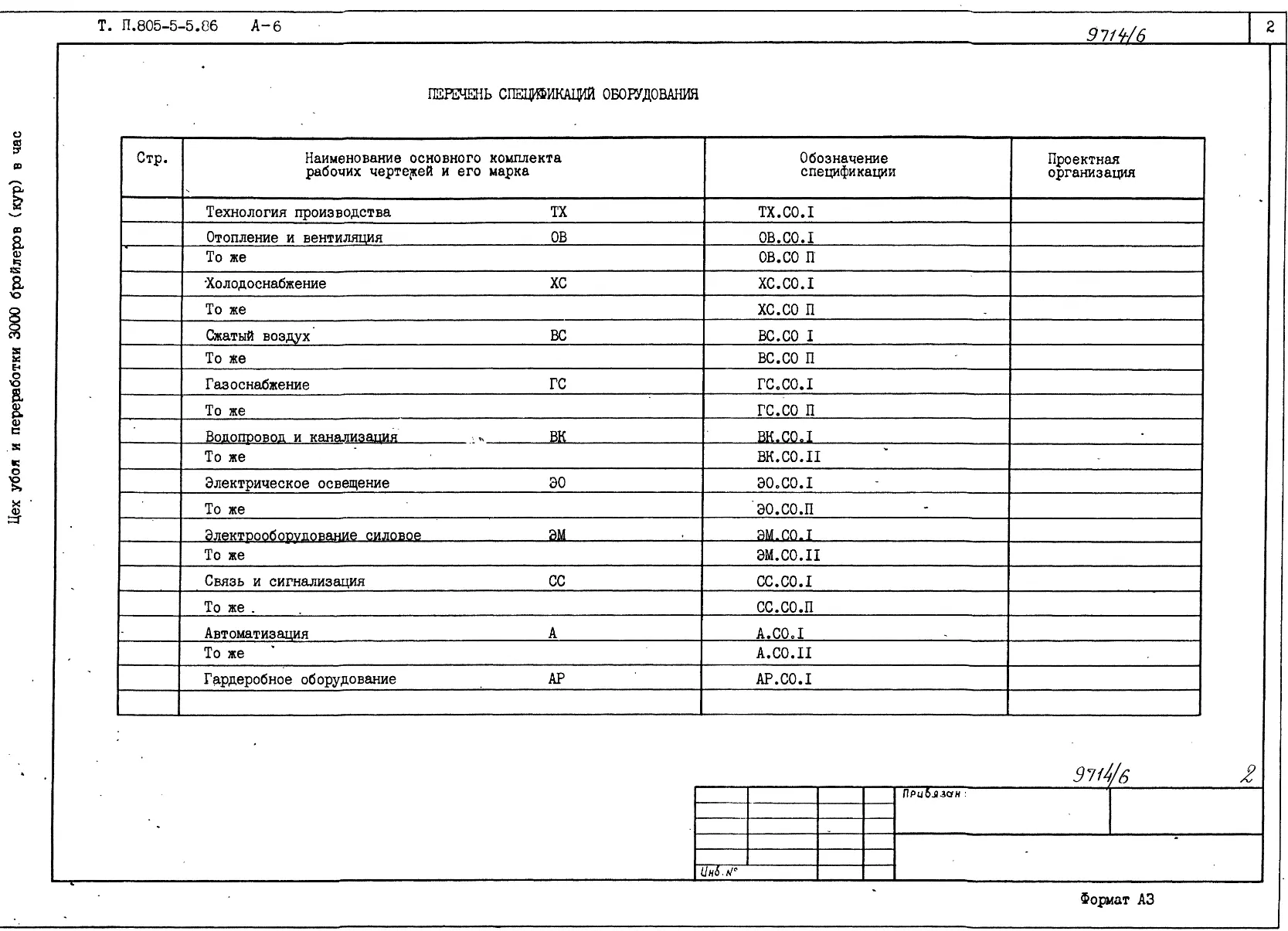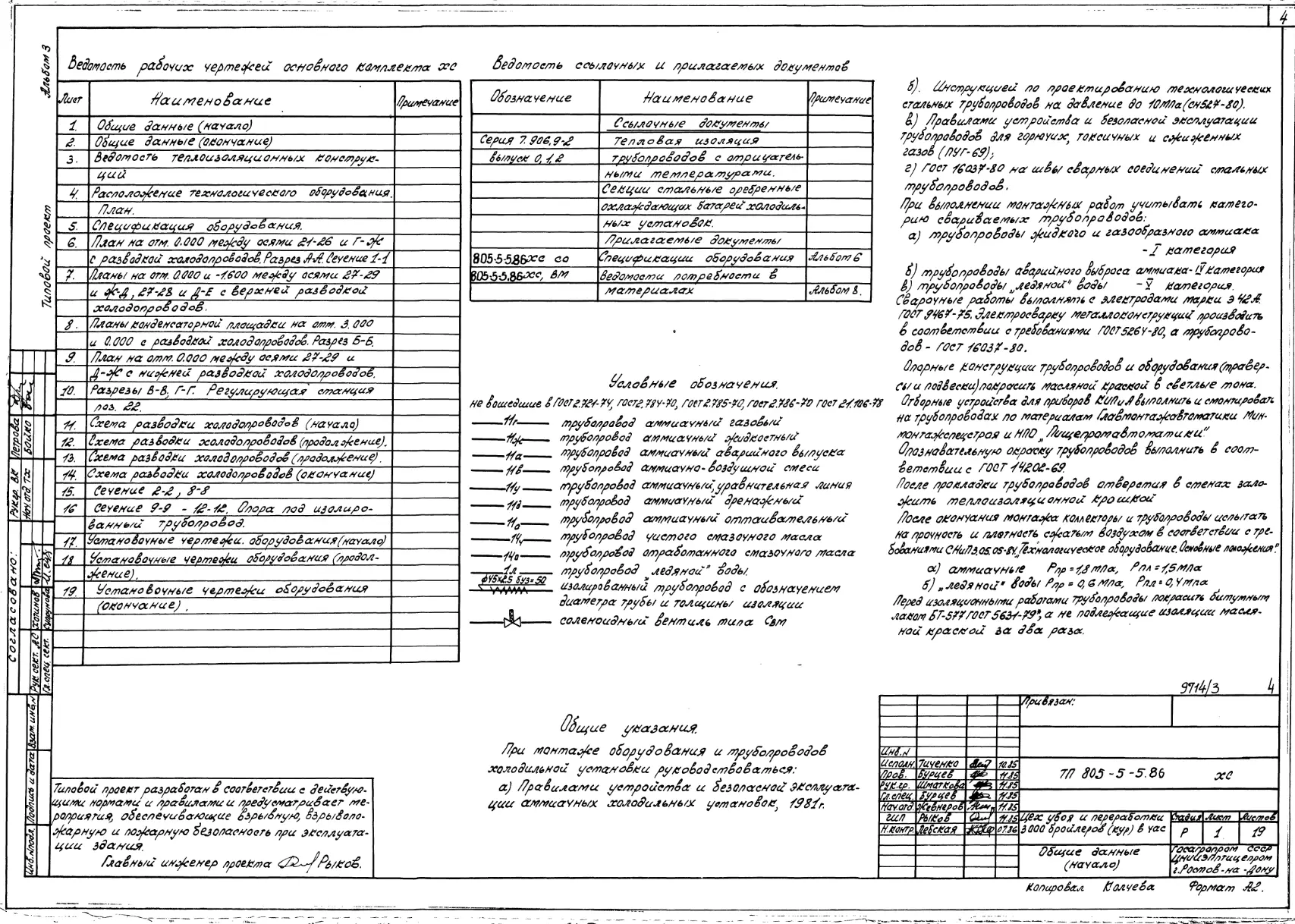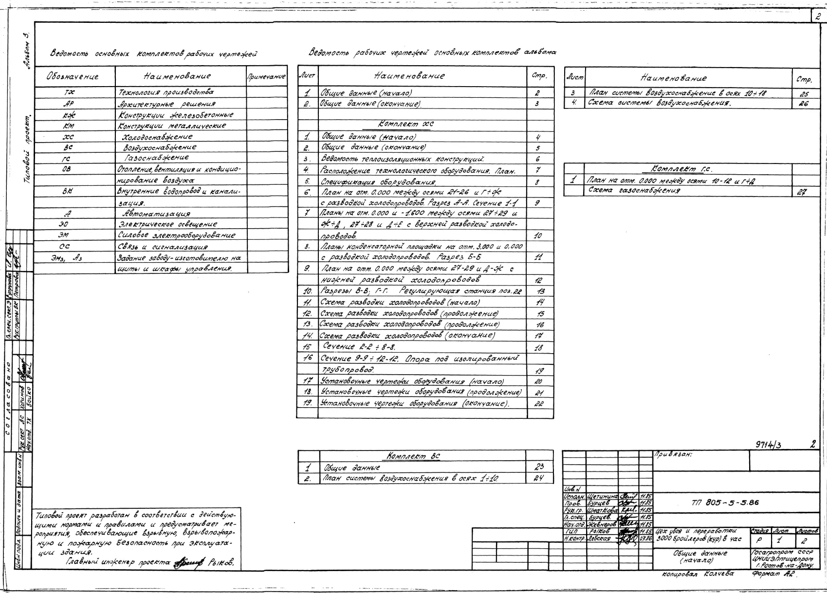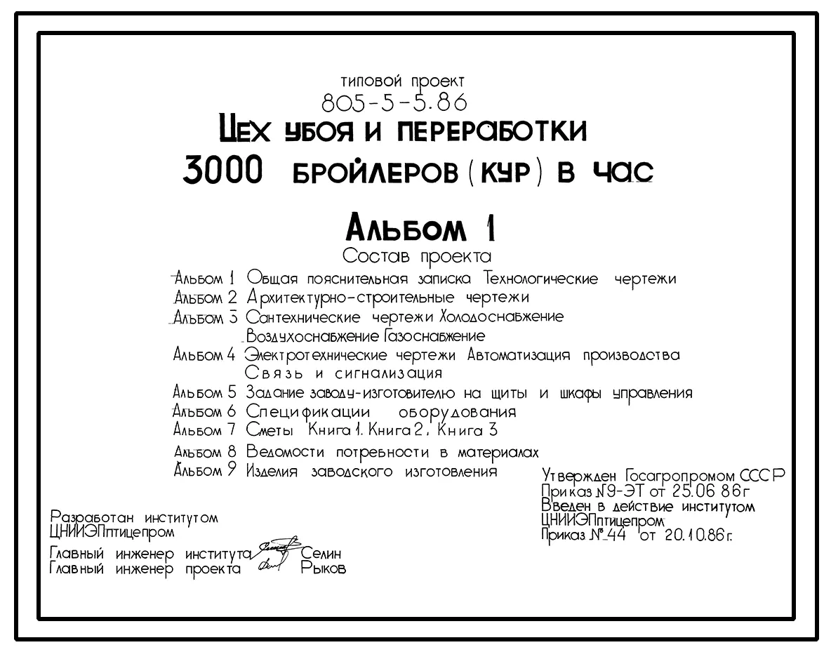 Типовой проект 805-5-5.86 Цех убоя и переработки 3000 бройлеров (кур) в час. Выпуск - 4580 т мяса птицы в год в потрошенном, фасованном и упакованном виде. Расчетная температура: -20, -30, -40°С. Стены - панельные легкобетонные. Покрытие - железобетонные