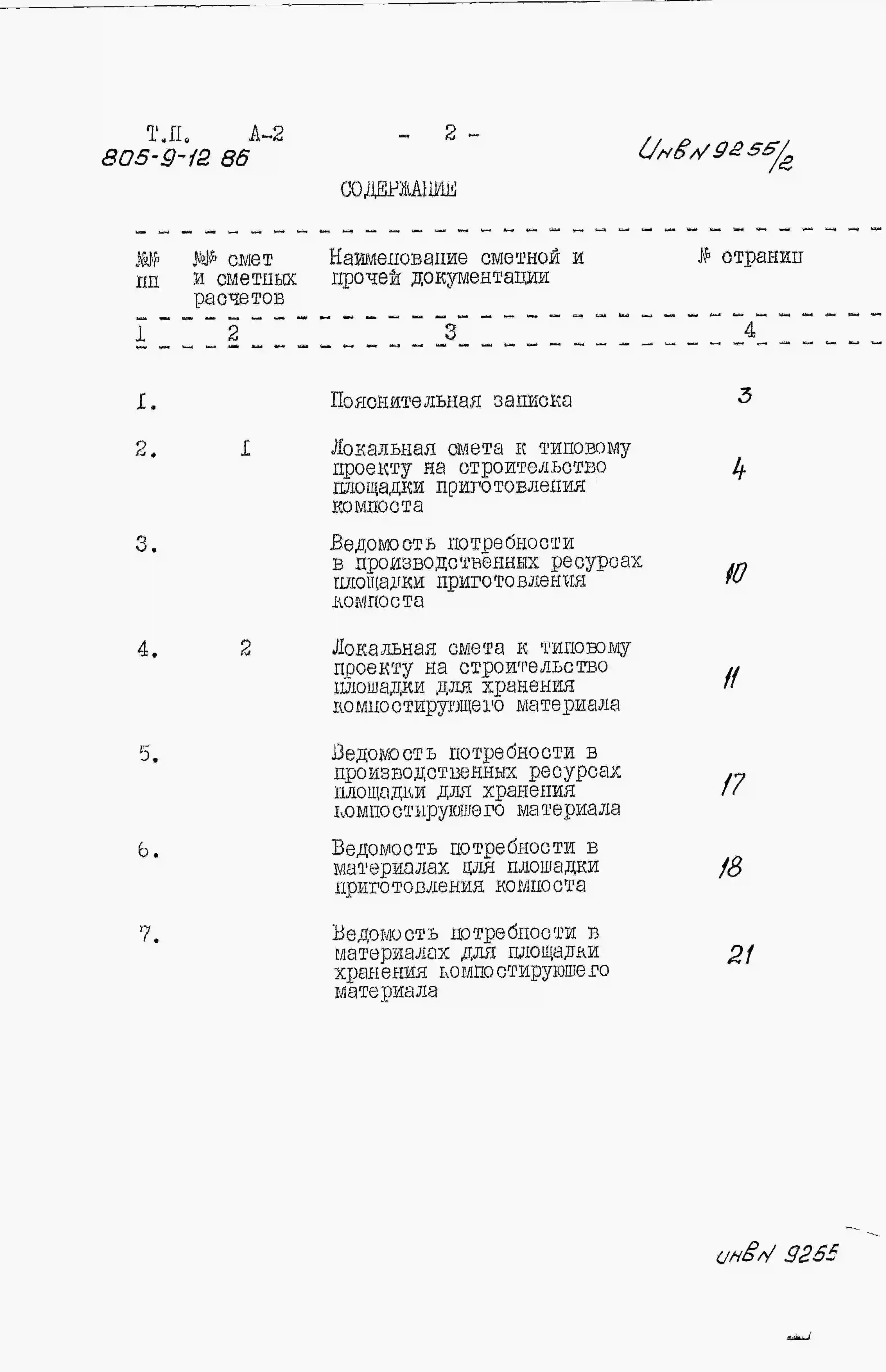 Типовой проект 805-9-12.86 Площадки для приготовления компоста и хранения компостирующего материала. Размеры: площадки для приготовления компоста - 105,6x186 м. Площадки для хранения компоста - 125,6x90 м. Расчетная температура: -20, -30, -40°С. Площадки