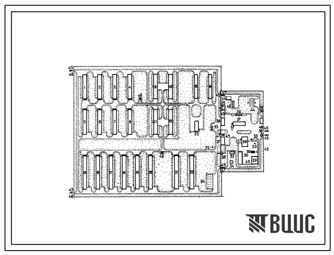 Типовой проект 819-26 Птицеводческий племенной завод яичного направления на 25 тыс.кур племенного стада. Схемы планировок. Для строительства в районах с расчетной наружной температурой -10?С.