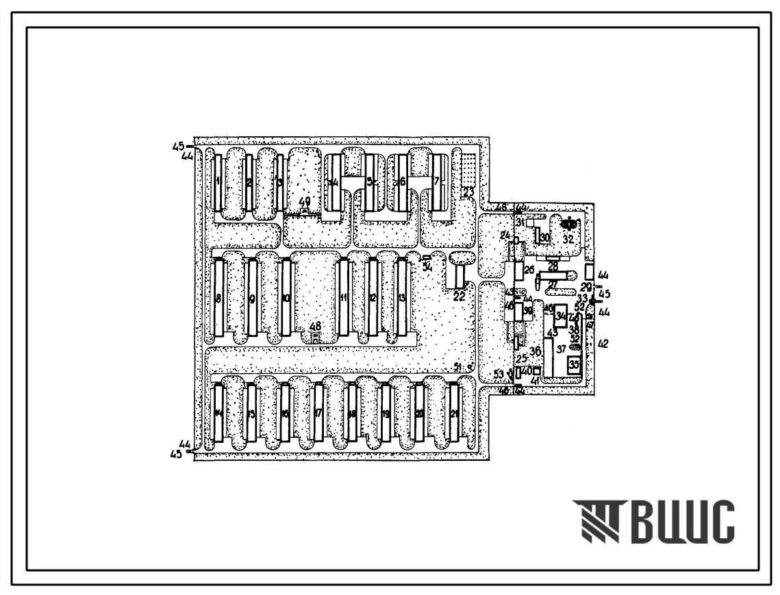 Типовой проект 819-28 Птицеводческий племенной завод мясного направления на 25 тыс.кур племенного стада. Схемы планировок.
