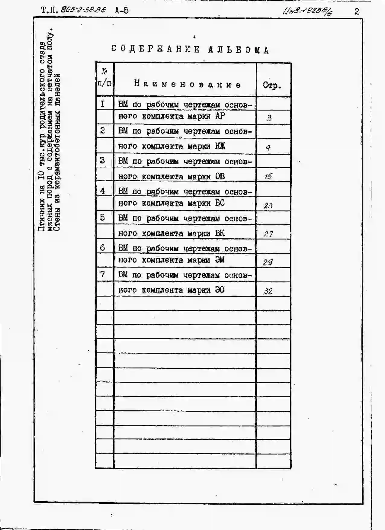 Типовой проект 805-2-58.86 Птичник на 10 тыс. кур родительского стада мясных пород с содержанием на сетчатом полу (стены из керамзитобетонных панелей)