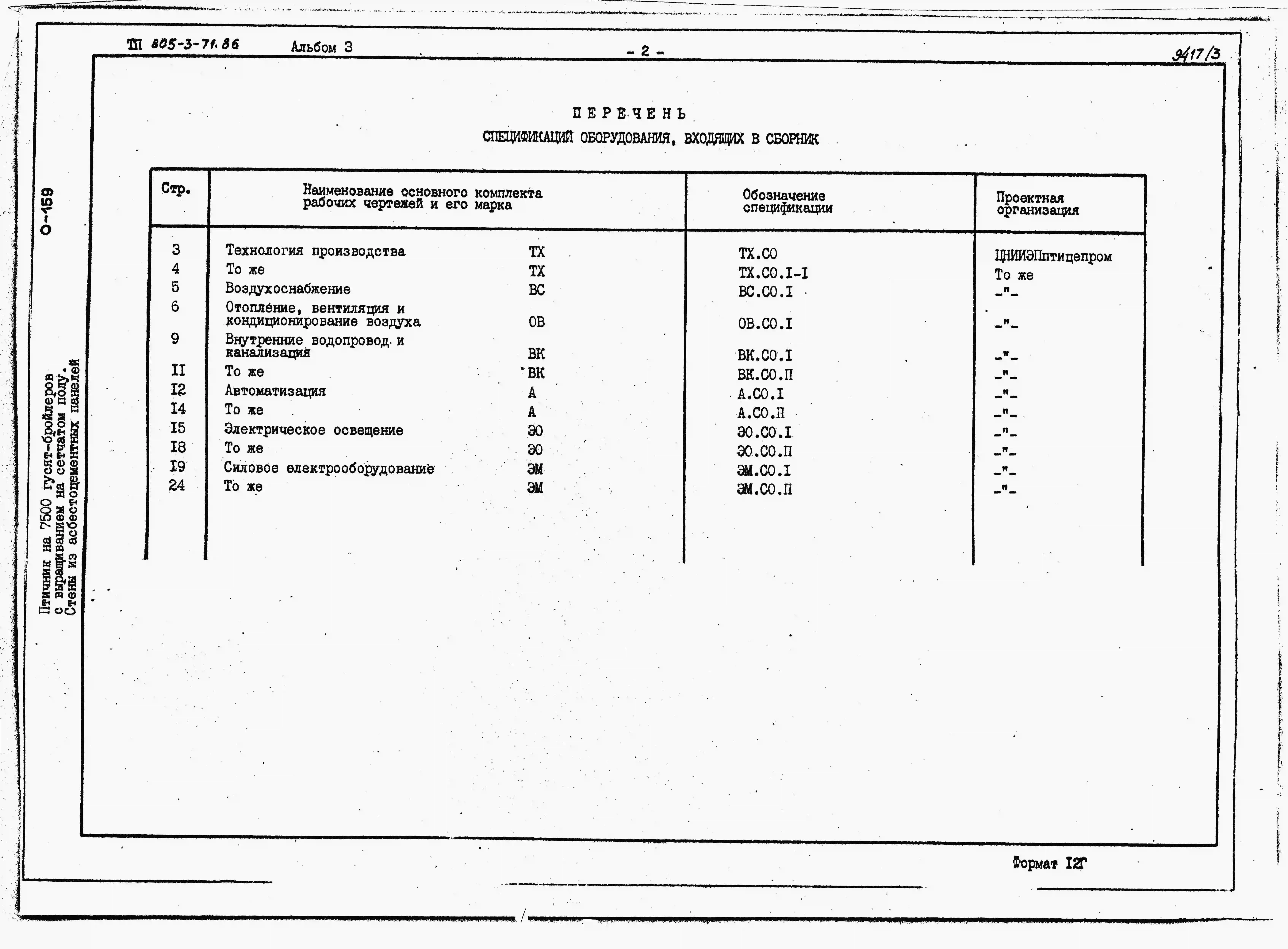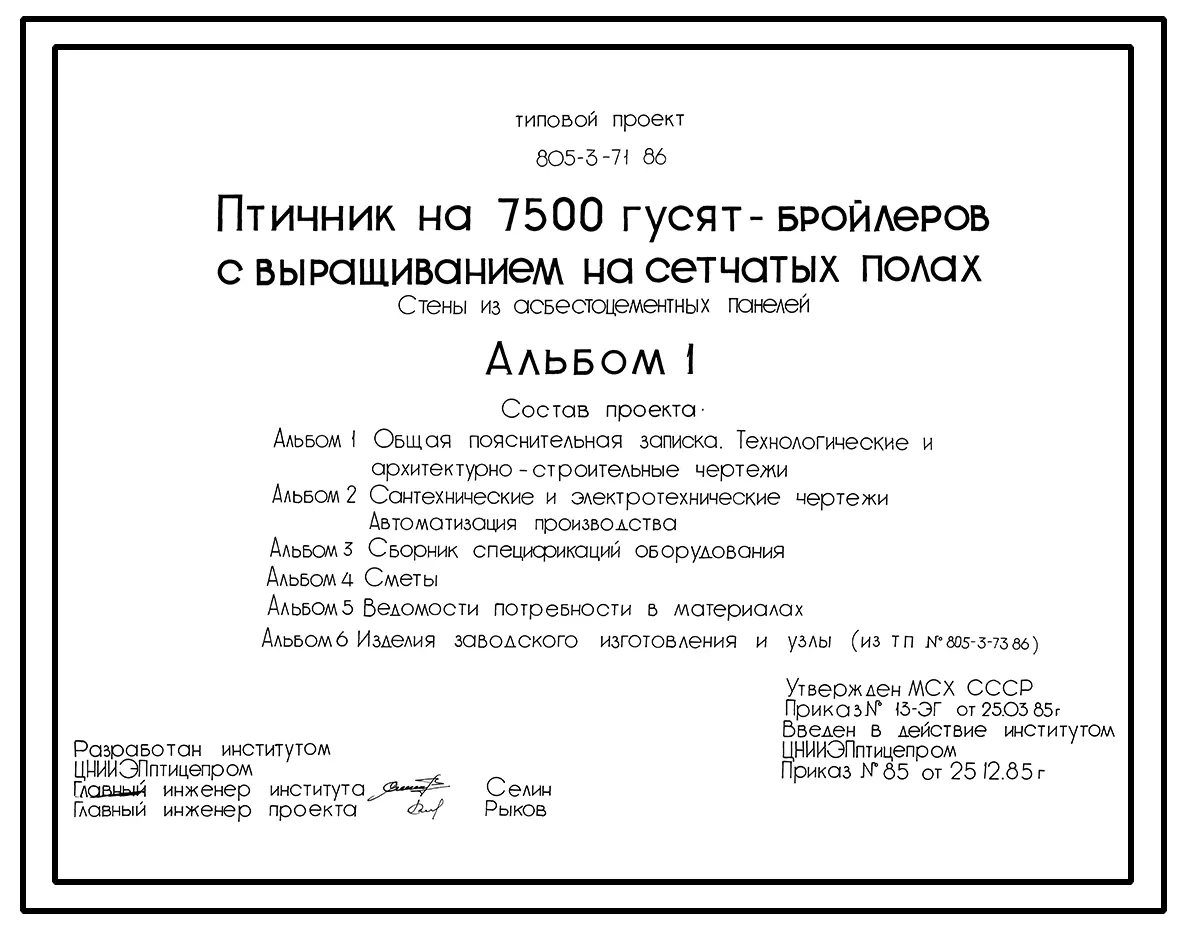 Типовой проект 805-3-71.86 Птичник на 7500 гусят-бройлеров с выращиванием на сетчатом полу