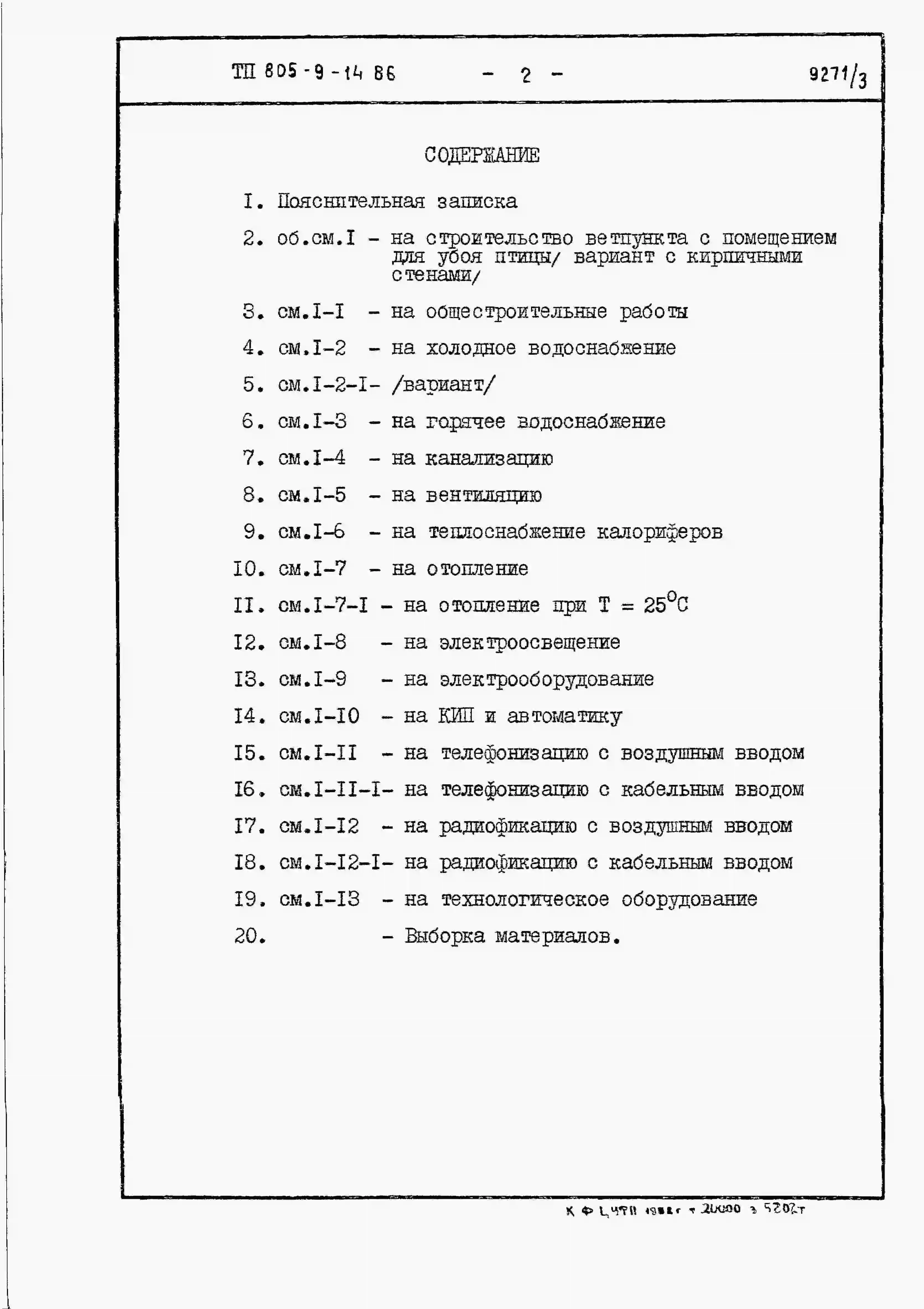 Типовой проект 805-9-14.86 Ветпункт с помещением для убоя птицы. Стены кирпичные