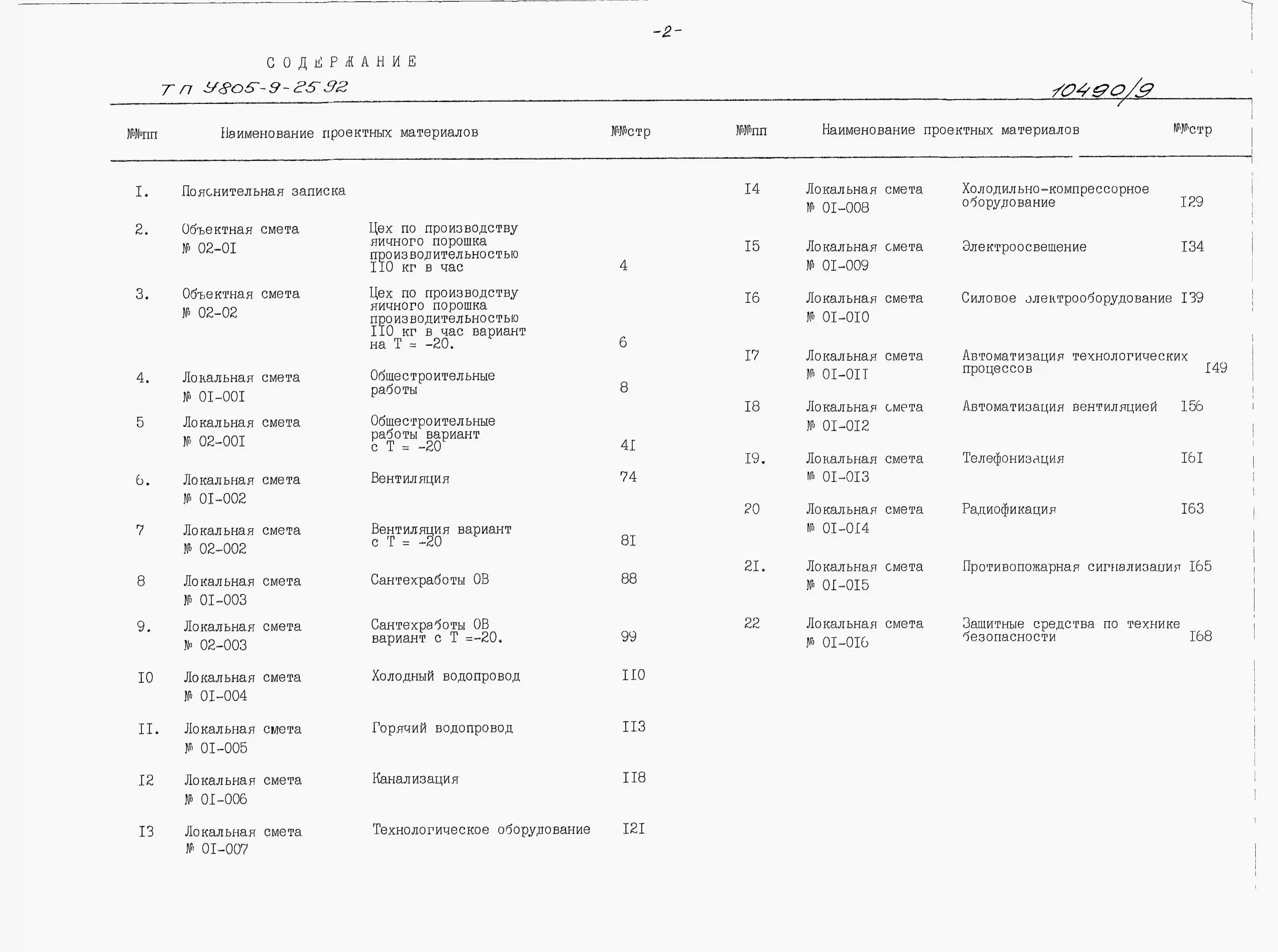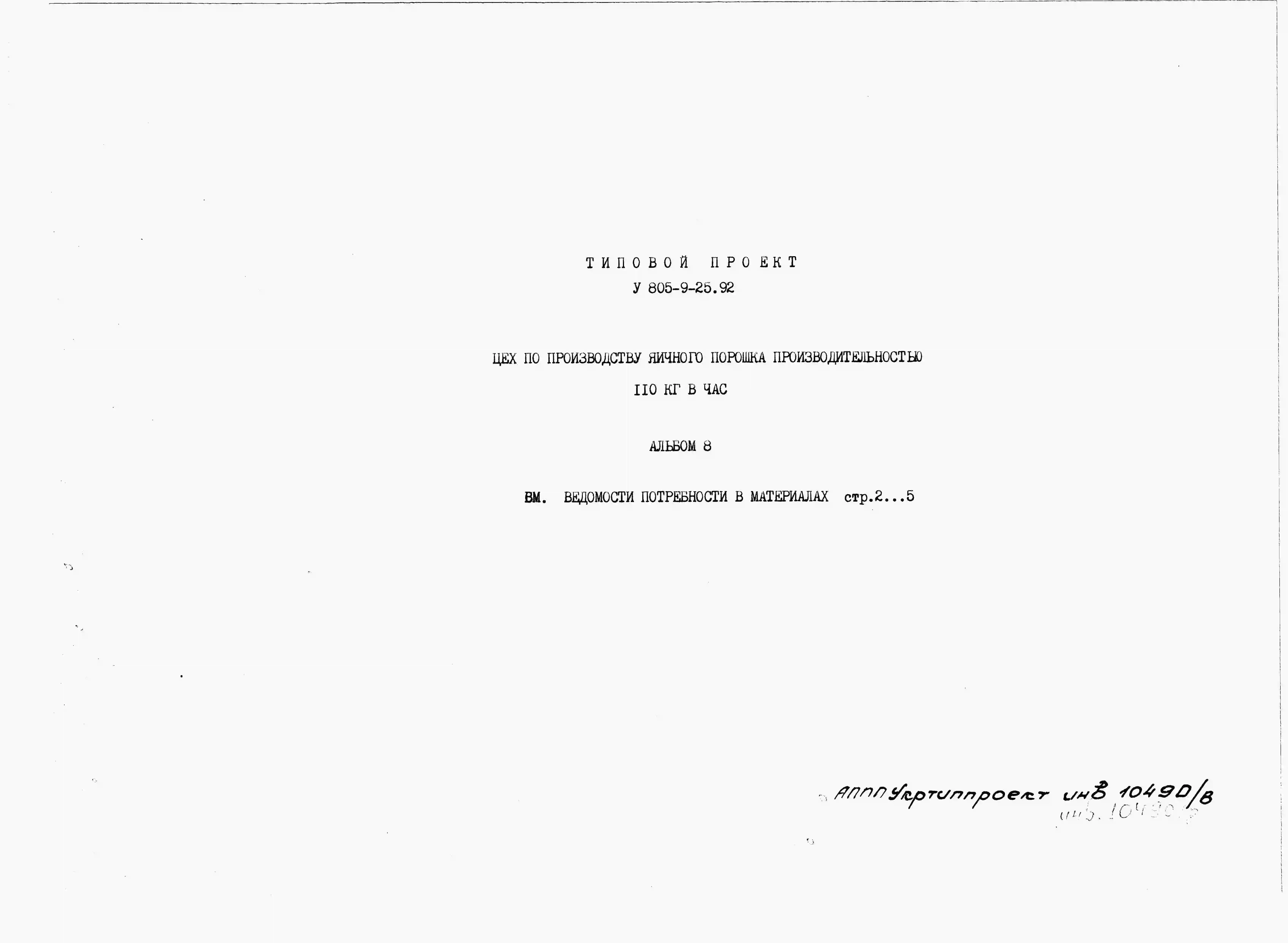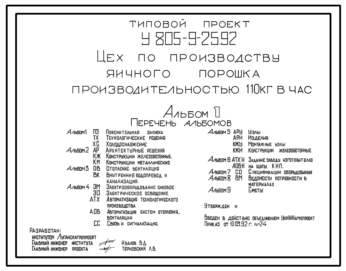 Типовой проект У.805-9-25.92 Цех по производству яичного порошка производительностью 110 кг/час