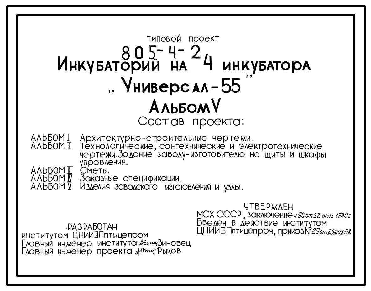 Типовой проект 805-4-2 Инкубаторий на 4 инкубатора «Универсал-55».