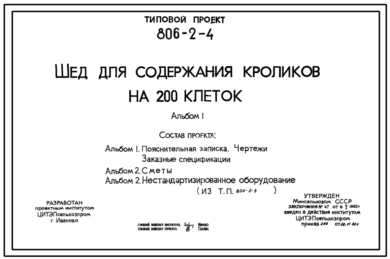 Типовой проект 806-2-4 Шед для содержания кроликов на 200 клеток. Содержание кроликов - в клетках. Размеры шеда - 3,3x81 м. Расчетная температура: -20, -30, -40°С. Конструктивные решения разработаны в 2 вариантах: железобетонном и деревянном.
