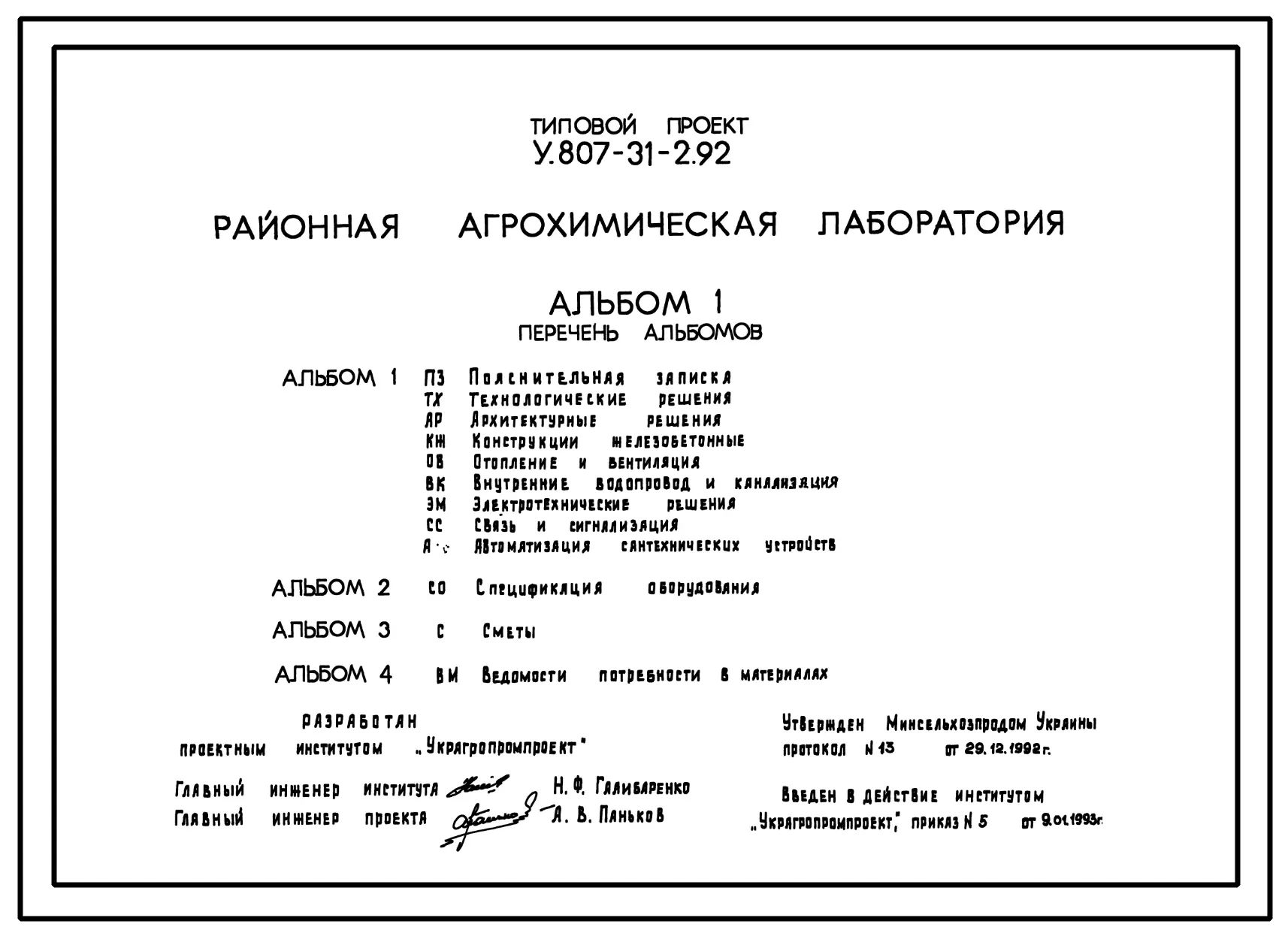 Типовой проект У.807-31-2.92 Районная агрохимическая лаборатория