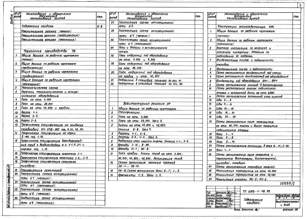 Типовой проект У.813-1-48.92 Склад для хранения зерна силосного типа вместимостью 10,53 тыс.тонн