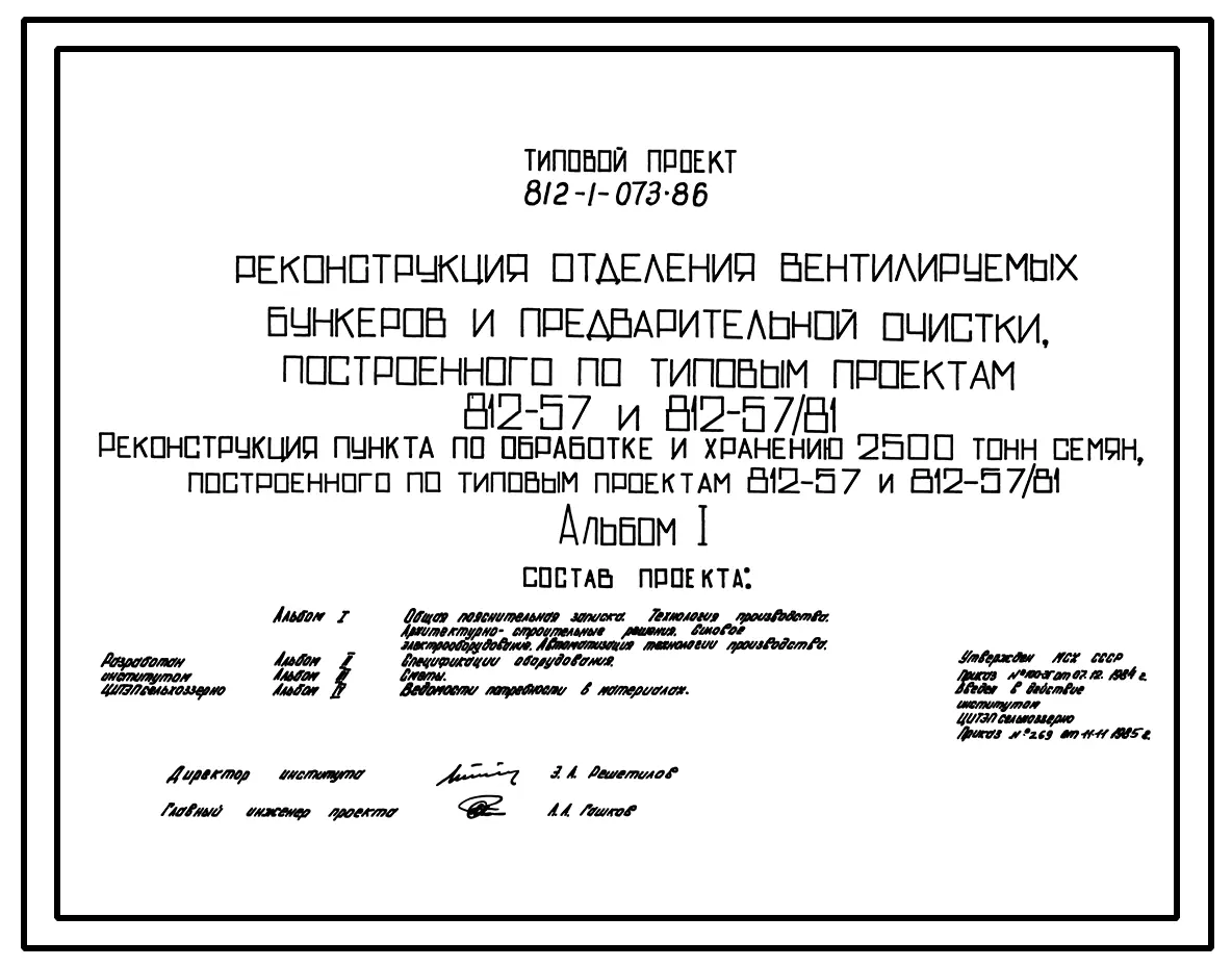 Типовой проект 812-1-073.86 Реконструкция отделения вентилируемых бункеров и предварительной очистки построенного по типовым проектам 812-57 и 812-57/81