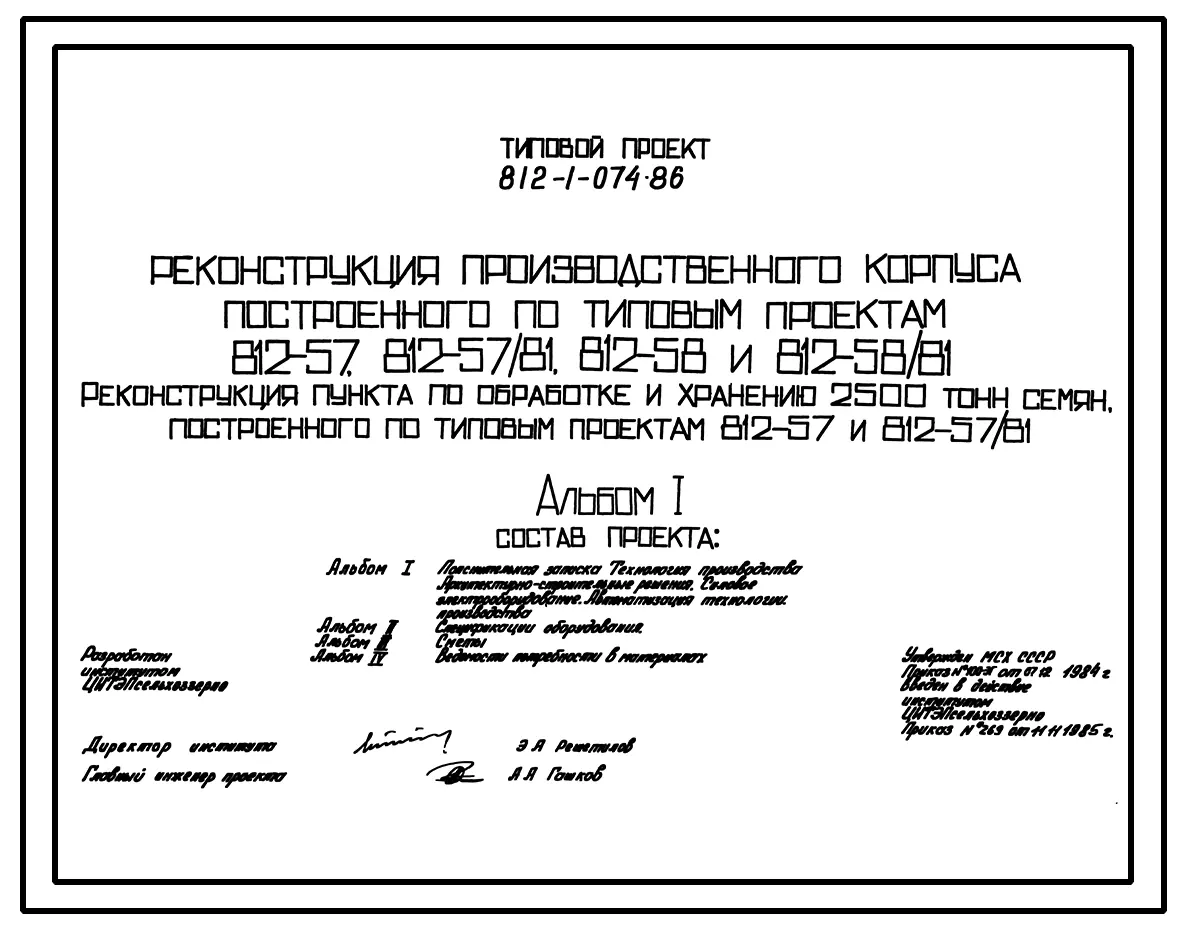 Типовой проект 812-1-074.86 Реконструкция производственного корпуса, построенного по типовым проектам 812-57, 812-57/81, 812-58, 812-58/81